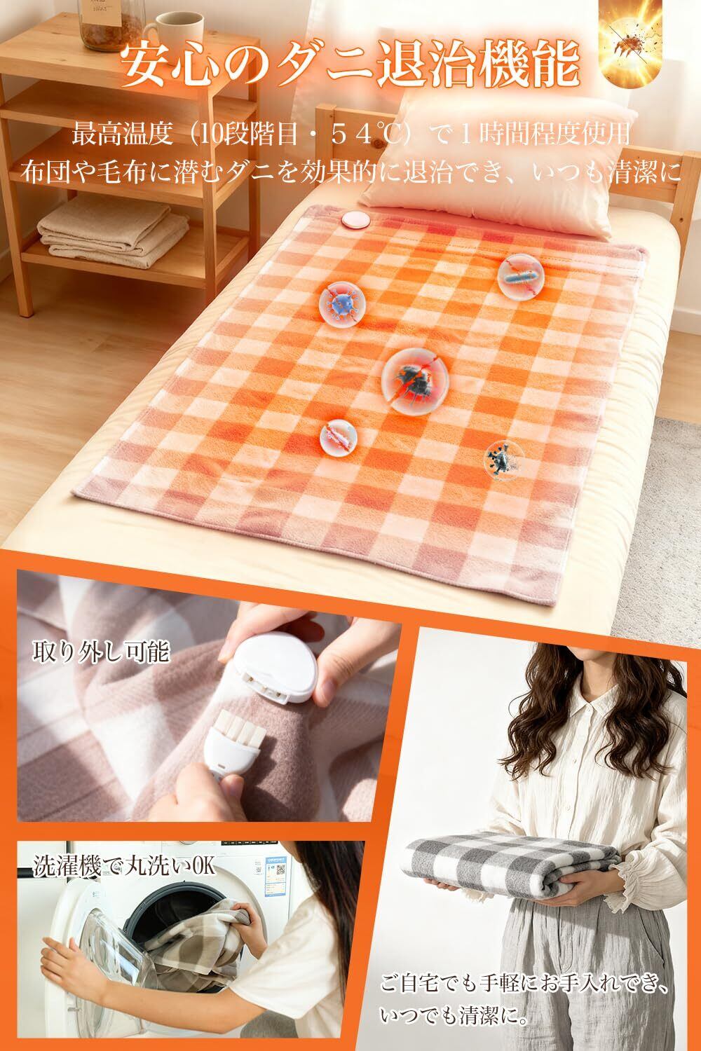 【洗える電気毛布&ダニ退治&省エネ設計】コントローラーを取り外して、洗濯機か手洗いで丸洗いが可能で、汚れても簡単にお手入れできます。また、高温(10段階目)で1時間以上運転し、 電気敷き毛布についたダニを退治し、いつも清潔!定格消費電力が40Wなので、1時間約¥2.1と経済的で、電気代を気にせずにご使用いただけます。