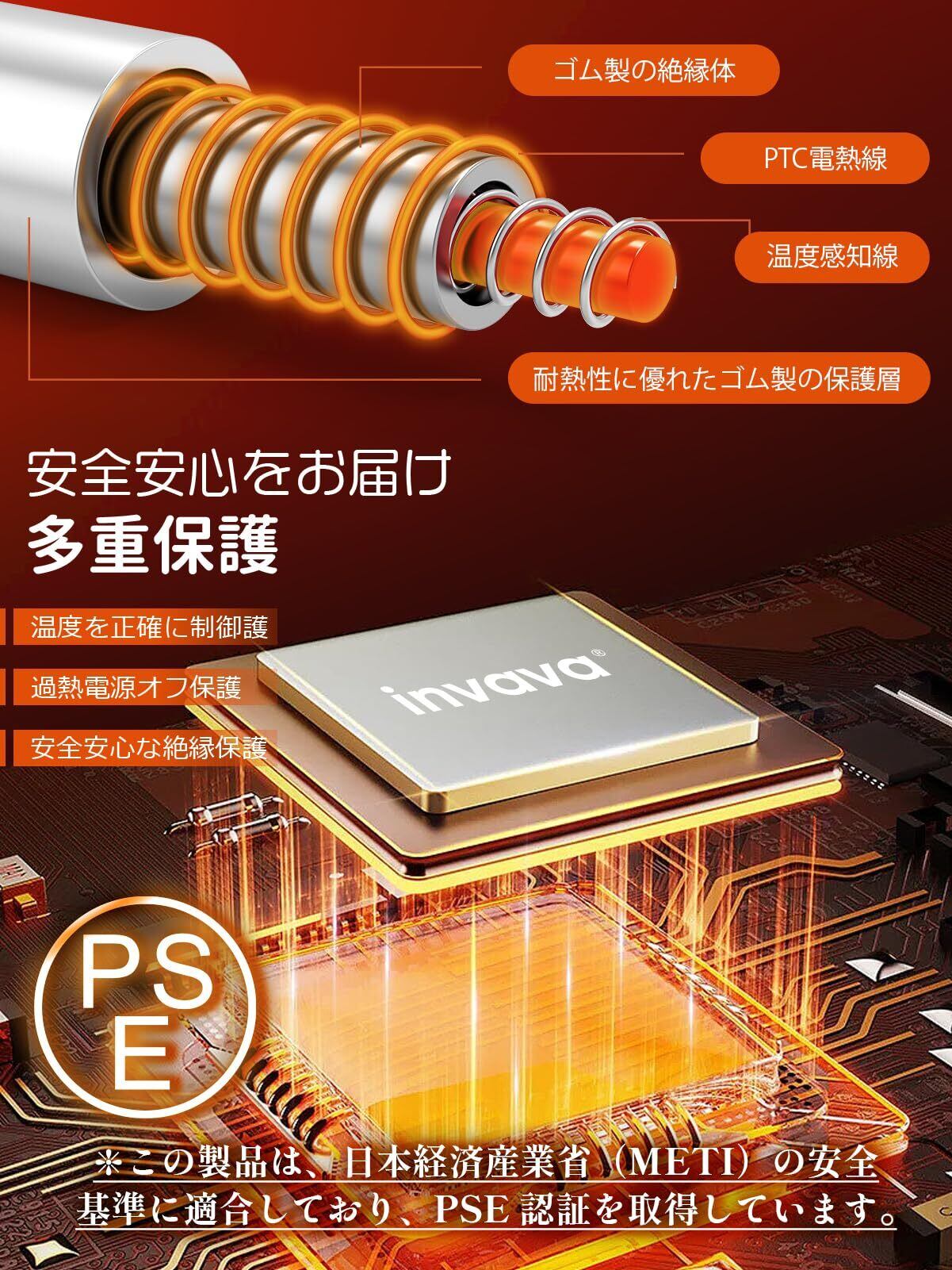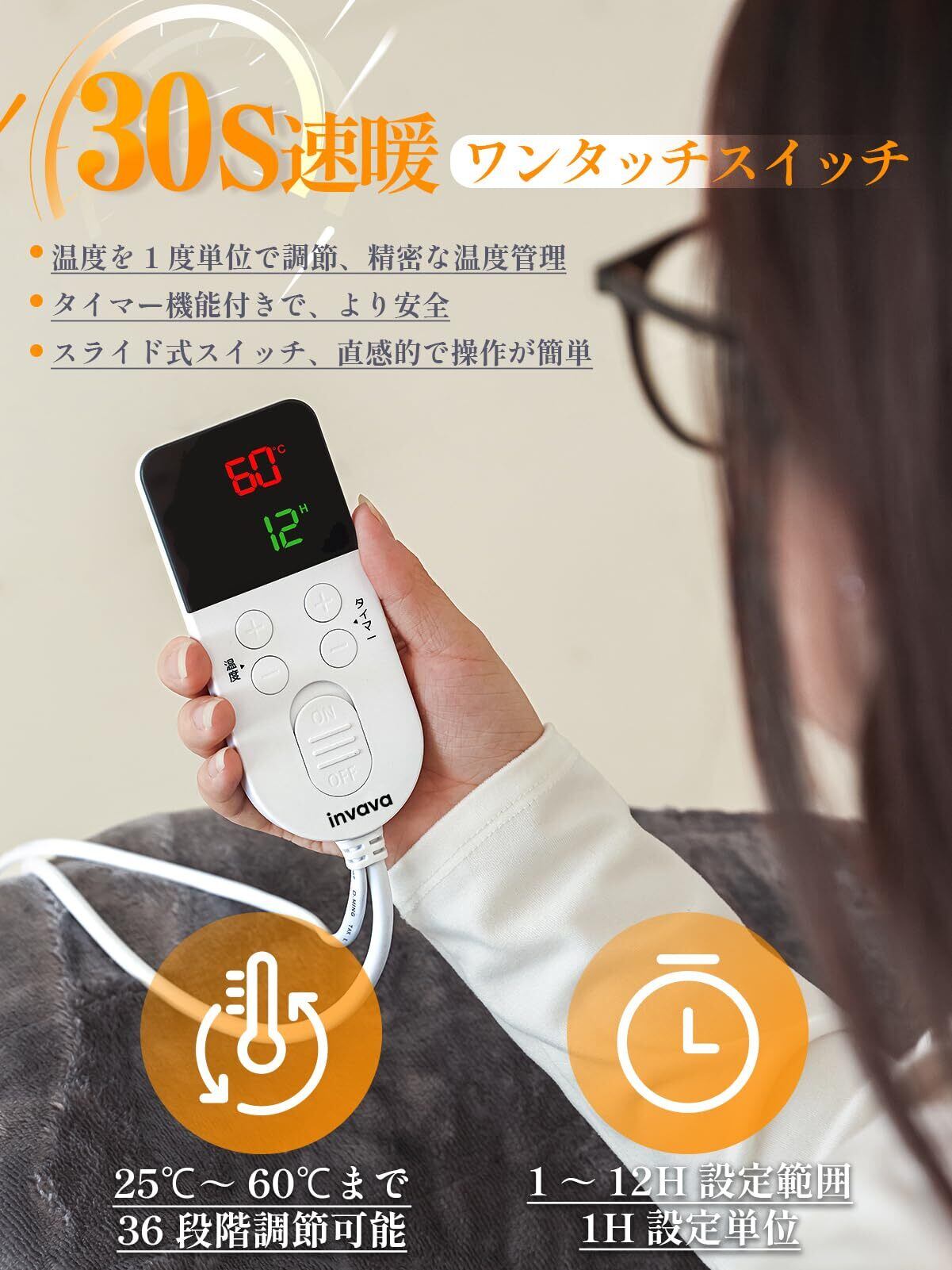 【二重U型配線+静音設計 安心感】寒い季節を快適に過ごすために、2025新型「invava電気毛布」が登場しました。高密度に配置された二重U型PTC配線により、毛布全体を均一にあたため、やさしく包み込むようなぬくもりを実現します。静音設計を採用しているため、就寝時や読書タイムでも作動音を気にせずリラックスできます。さらに一人暮らしの部屋でも場所を取らず、ご家庭のリビングでのくつろぎや、冷えやすいご年配の方の就寝時にもぴったり。安心性と快適性を兼ね備え、幅広いライフスタイルに寄り添う電気毛布です。