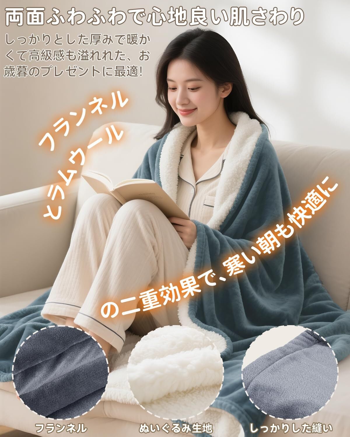 【高級両面使用可能仕様で極上の温もり電気毛布が登場】極上ふわふわ両面使える電気ひざ掛けは表面が吸湿発熱に優れた高級フランネル、裏面は保温性抜群のふわふわ素材を採用され、まるで高級ブランケットのような肌触りで、寒い日も「あ~気持ちいい」とつぶやきたくなる極上温かさ!従来品より30%アップの保温性!ふかふか素材が体温を逃さず、電気をつけていない時でも「これだけで十分暖かい」と驚きの声続出し、電気代節約にも嬉しい設計です。冬はもちろん、夏のオフィスや寝室の冷房対策としても大人気。「1年中使えるからお得」一年中使えるアイテムです。その上、ヒーター部分は炭素繊維加熱線を採用、優れた導電性や導熱性を実現し、電源オンにすると、すぐじんわりと暖かくなります。布団に入った瞬間、温かさが身体を包み込み、あなたの寒さをジャストフィットします!それに床に座り、本体をひざや腰にかけたり、ソファーに敷いてし使用たりするなどいろんな場合で大活躍!冬で手足が冷えて寝つきが悪くなったり、寒い夜間で起きてしまったり、苦労している方に本店のあったかぽかぽかの電気毛布をおオススメ。140×80cm