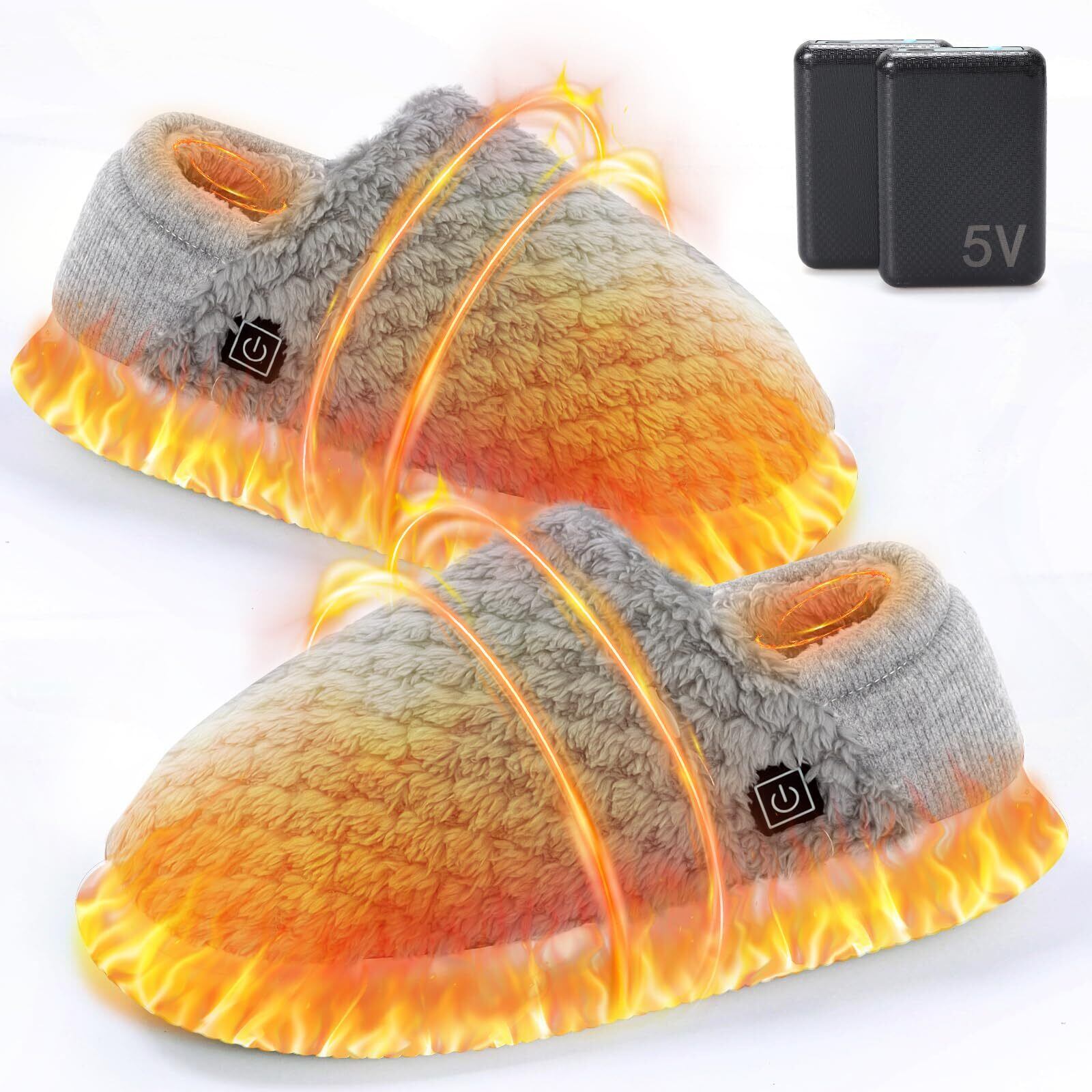 【数量限定】電気スリッパ コードレス 10秒速暖 フットウォーマー 足温器 充電式 電熱スリッパ 歩ける 足元ヒーター 2個6000mAhモバイルバッテリー付き 日本製ヒーター 3段階温度調節 1.5m延長コード付き スリッパ ヒーター 洗える 足を温めるグッズ 男女兼用-グレー, M