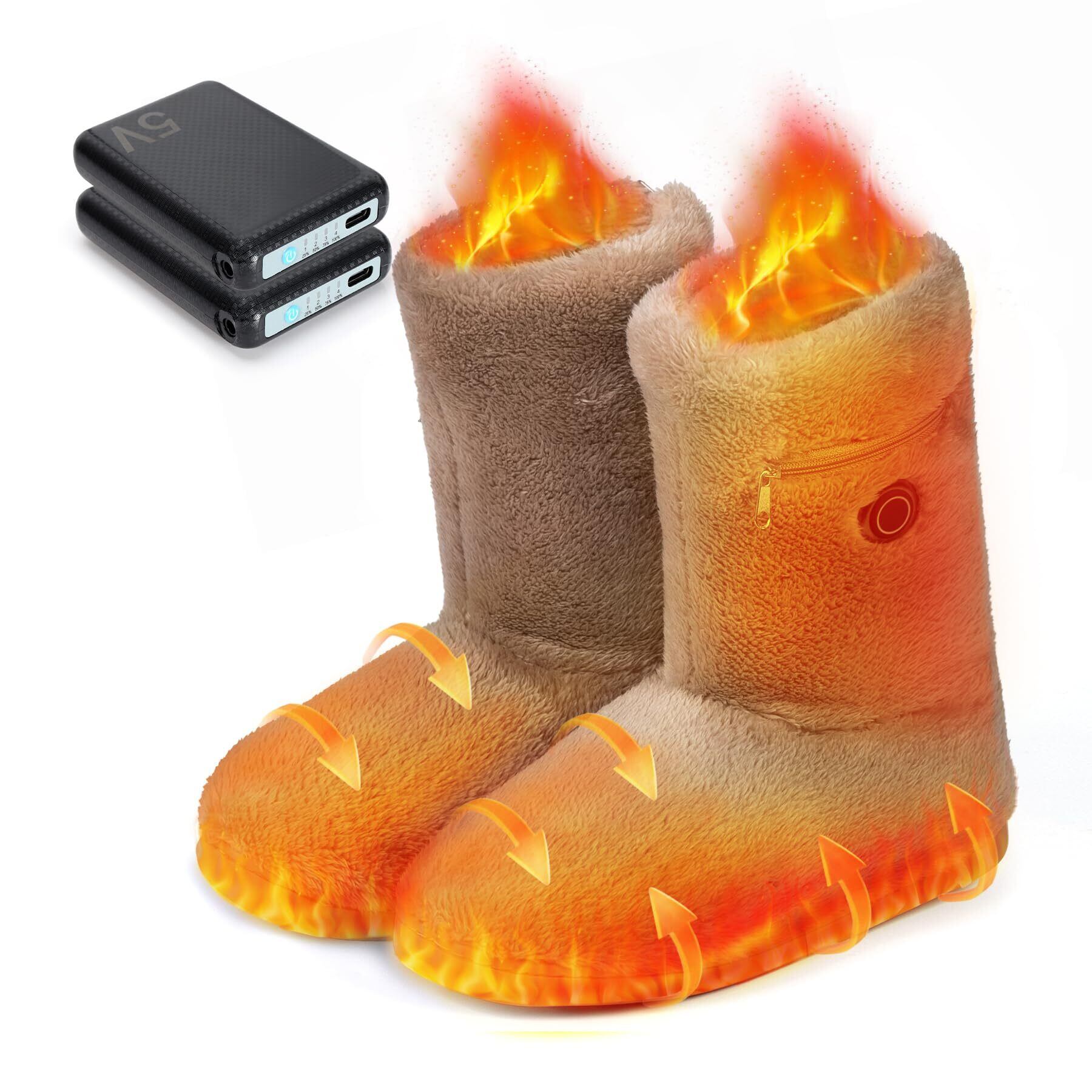 フットウォーマー コードレス 電気スリッパ 10秒速暖 足温器 充電式 足元ヒーター 電熱スリッパ 歩ける 2個*6000mAh バッテリー付き 日本製ヒーター 3段階温度調節 1.5m延長コード付き ふわふわ 洗える 足を温めるグッズ 足元 暖房 ヒータースリッパ 男女兼用 (カーキ, M(22.5~24.5cm))
