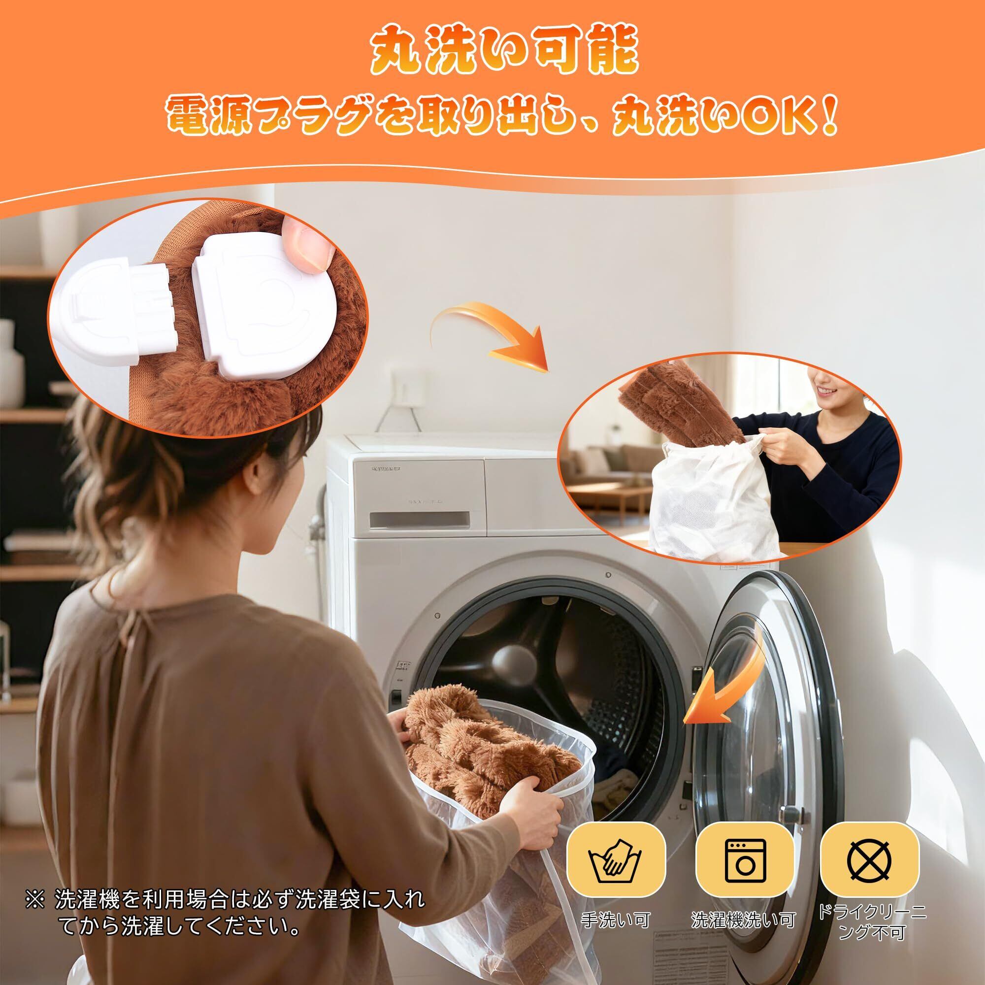 【丸洗いで洗濯可能のホットマット】 この電気ホットマットは洗濯機で簡単に丸洗いでき、お手入れが簡単です。優れた密封性があり、濡れたり浸水した場合でも中の電熱線が壊れる心配がありません。丸洗いの前には、コネクターを取り外す必要があります。(※注意: アイロンをかけたり、ドライクリーニングしたりしないでください。)