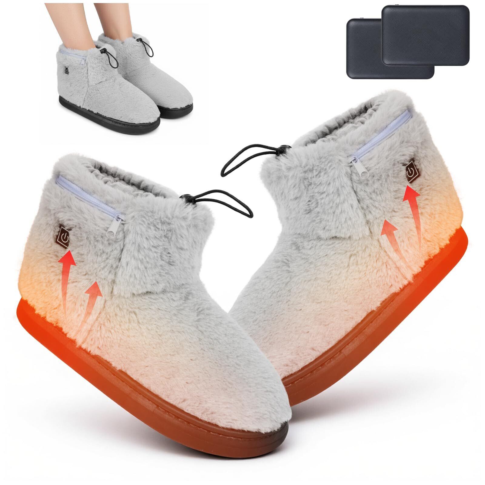 電気スリッパ コードレス フットウォーマー 足温器 【3段階温度調整・足首まで包み込む】 2個10000mAhモバイルバッテリー付き 電気足温器 足を温めるグッズ 自由に歩ける 最大13時間使用可 速暖 省エネ NTC過熱保護 洗濯可能 男女兼用 滑り止め ドローコード式 防寒グッズ 暖房器具 暖かい きれい 使用簡単 PSE認証済み 日本語説明書 22.0~25.0cm (灰白色)