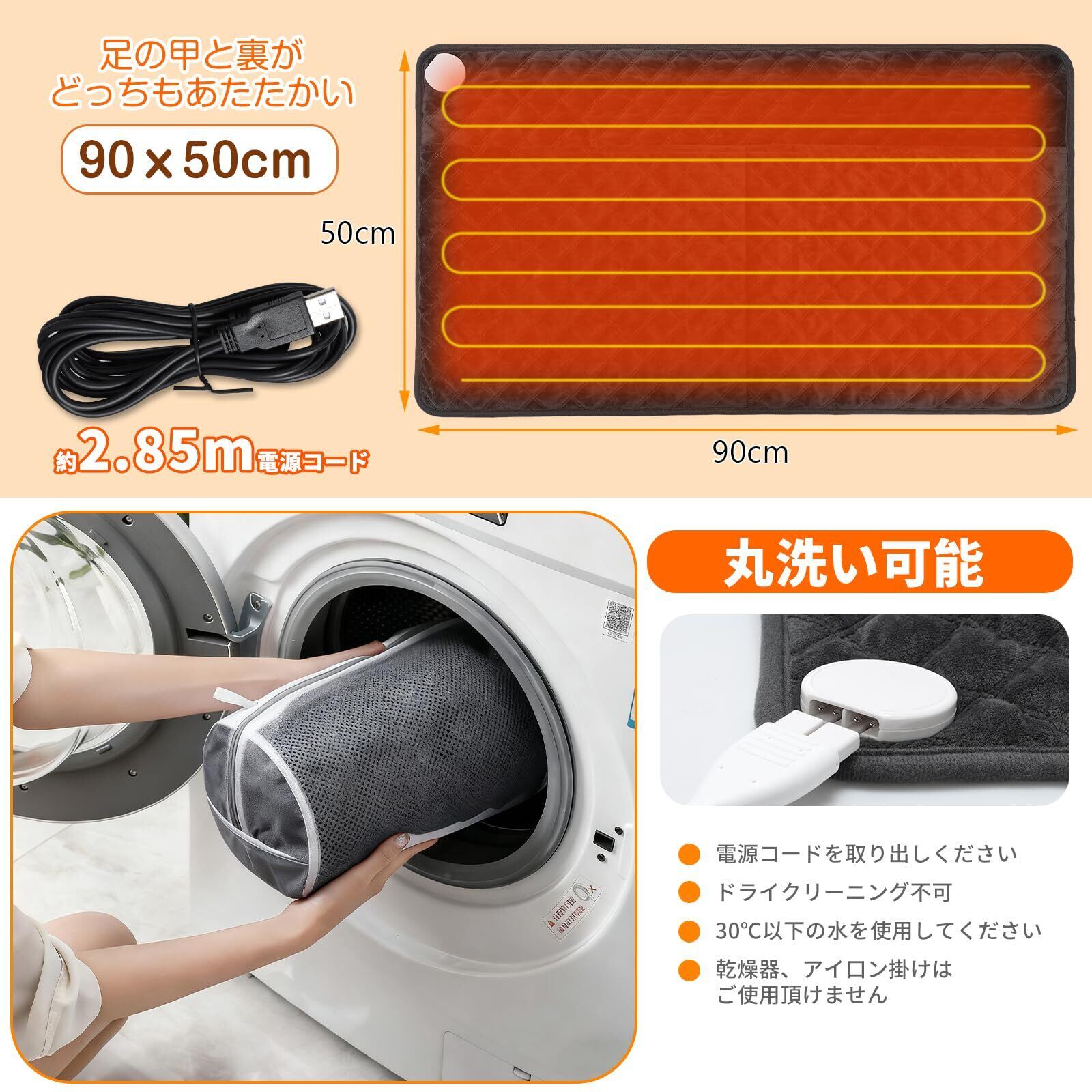 【ふわふわ素材&洗える足元マット】足元加熱マットは、クリスタルベルベットを採用し、柔らかくてふわふわ、肌さわりがよく、熱を効率よく体に伝えます。電源コードは取り外し可能で、取り外した後、マット部分は水洗えます。手洗いをお勧めします。洗濯機を使用する場合、洗濯ネックに入れて洗ってください。