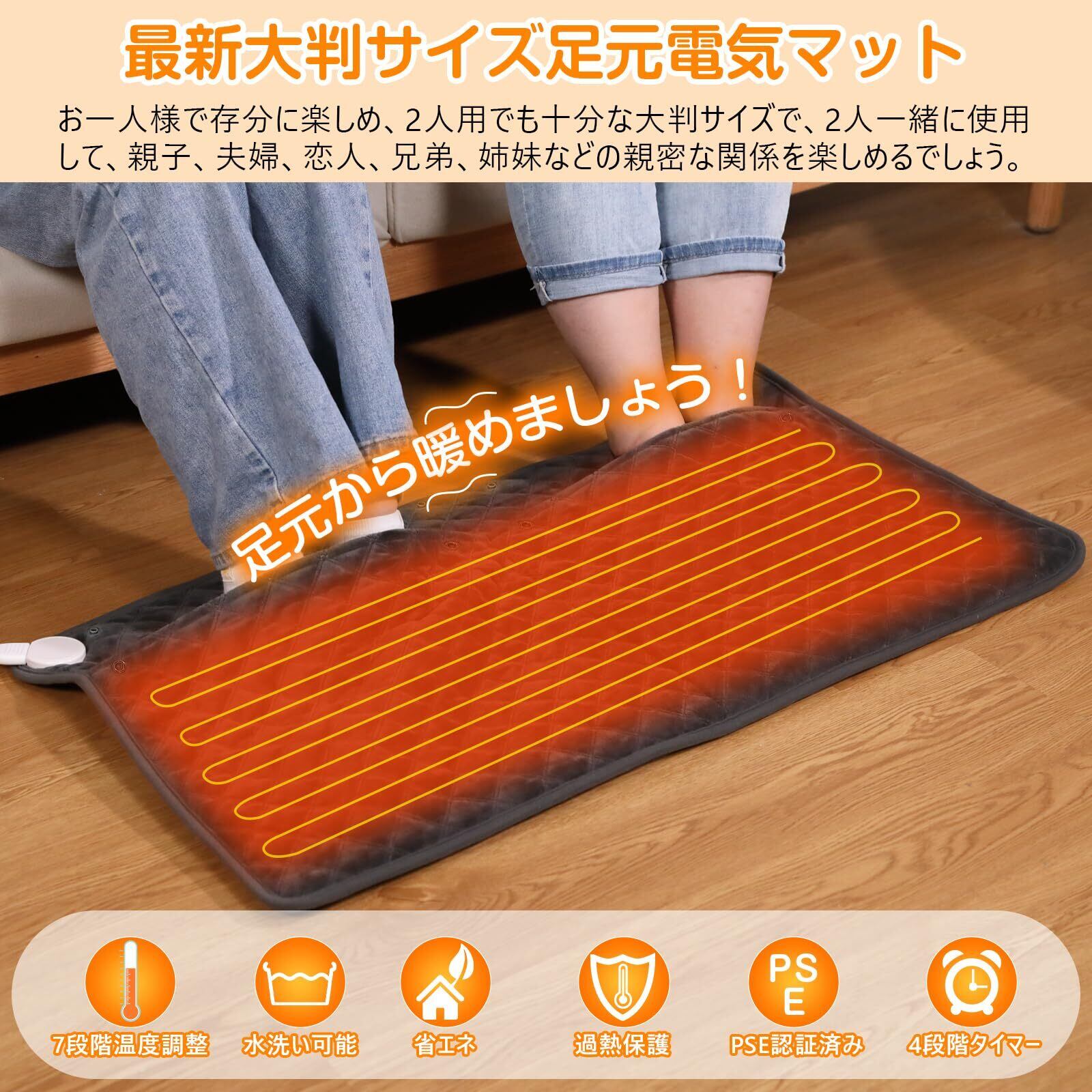 【人気商品】電気足温器 フットウォーマー 大判サイズ 10秒速熱 4段階タイマー 7段階温度調整 多機能ホットマット 90*50cm 足元あったかグッズ 日本製ヒーター 過熱保護 足元ヒーター 在宅勤務 テレワーク 寒さ対策 ホットフットヒーター 洗濯可 PSE認証済み 省エネ 日本語説明書付き