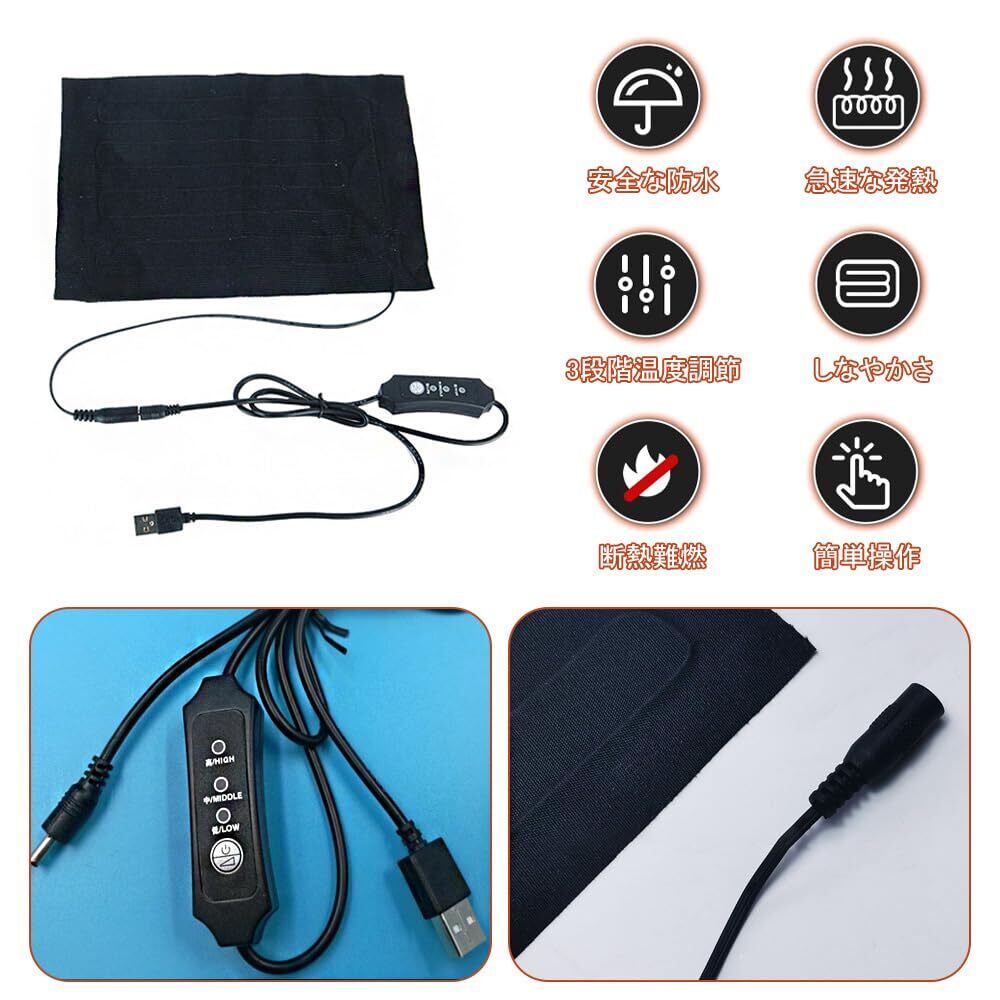 USBヒーター パッドヒーター 電気加熱シート 足元暖房 タイマー機能 防水 過熱保護 冷え性に対応 3段階温度調節 5V用 (ブラック, 24*17cm)