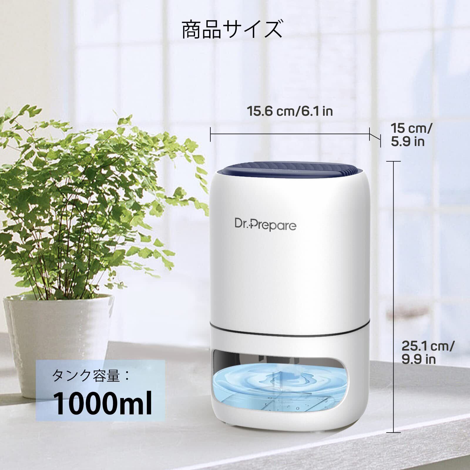 Dr.Prepare 除湿機 1000ml 小型除湿機 狭所向け 湿気取り 除湿器 梅雨対策 1台2役 除湿&空気清浄 マイナスイオン 静音 G4フィルター付き 満水自動オフ タイマー 7色ライト カビ防止 結露対策 衣類乾燥 部屋 クローゼット トイレ リビング 車中泊 コンパクト 省エネ 日本語説明書付