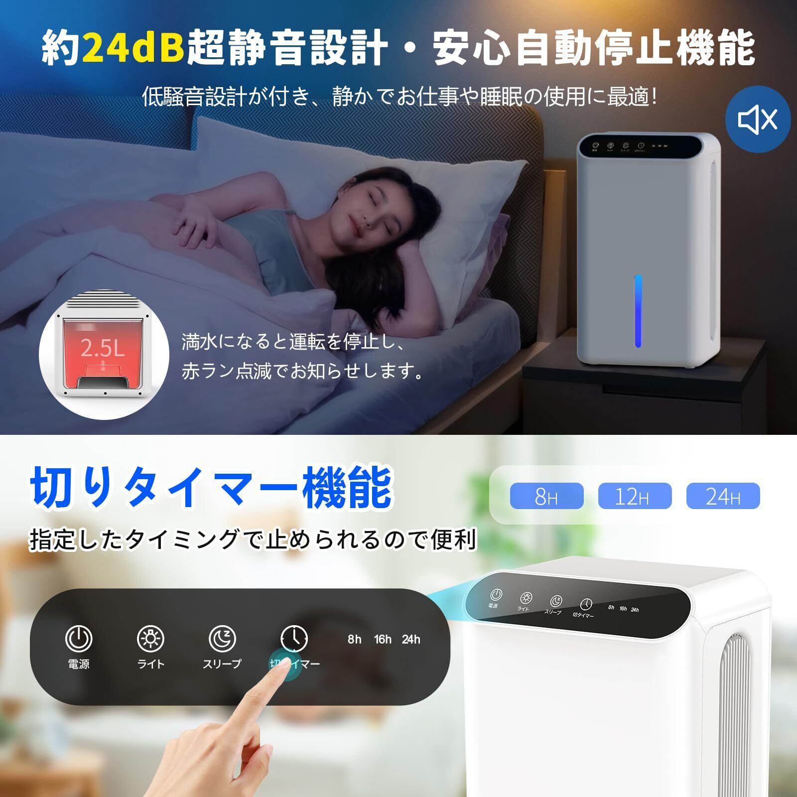 ①除湿機・空気清浄機一体型 ②强力除湿 ③大容量2.5L ④24時間タイマ ⑤休みモード付き ⑥満水… 表示を増やす