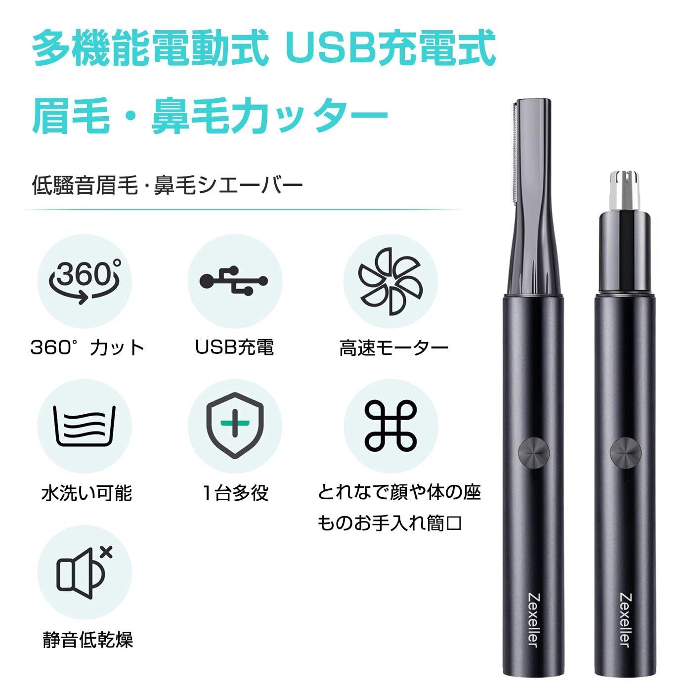 【人気商品】【メンズ美容師監修】新登場&1台多役 眉毛シェーバー セット USB充電式 鼻毛カッター 眉毛カッター 眉ハサミ・コーム付属 耳毛処理 産毛用(顔・脇・脚) 水洗い可能 安全設計 男女兼用 多機能電動 低騒音 日本語説明書付き プレゼント対応(ブラック)Eyebrow