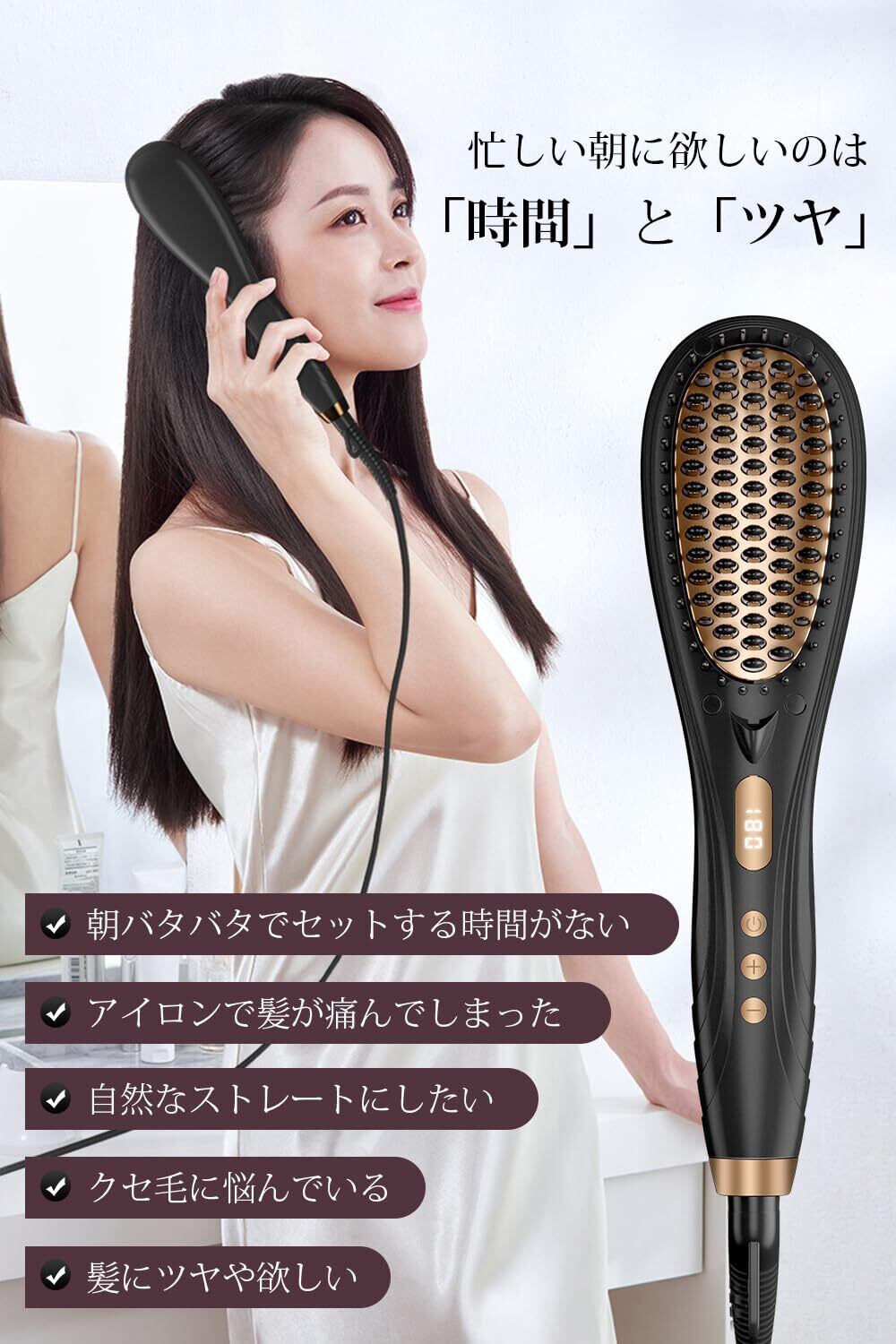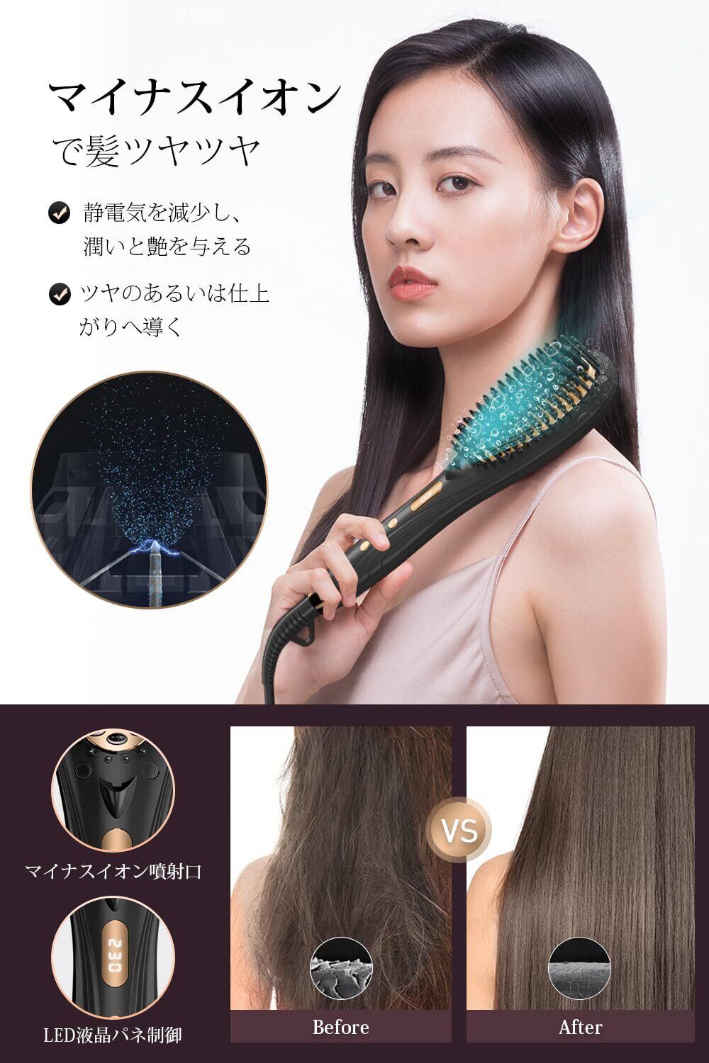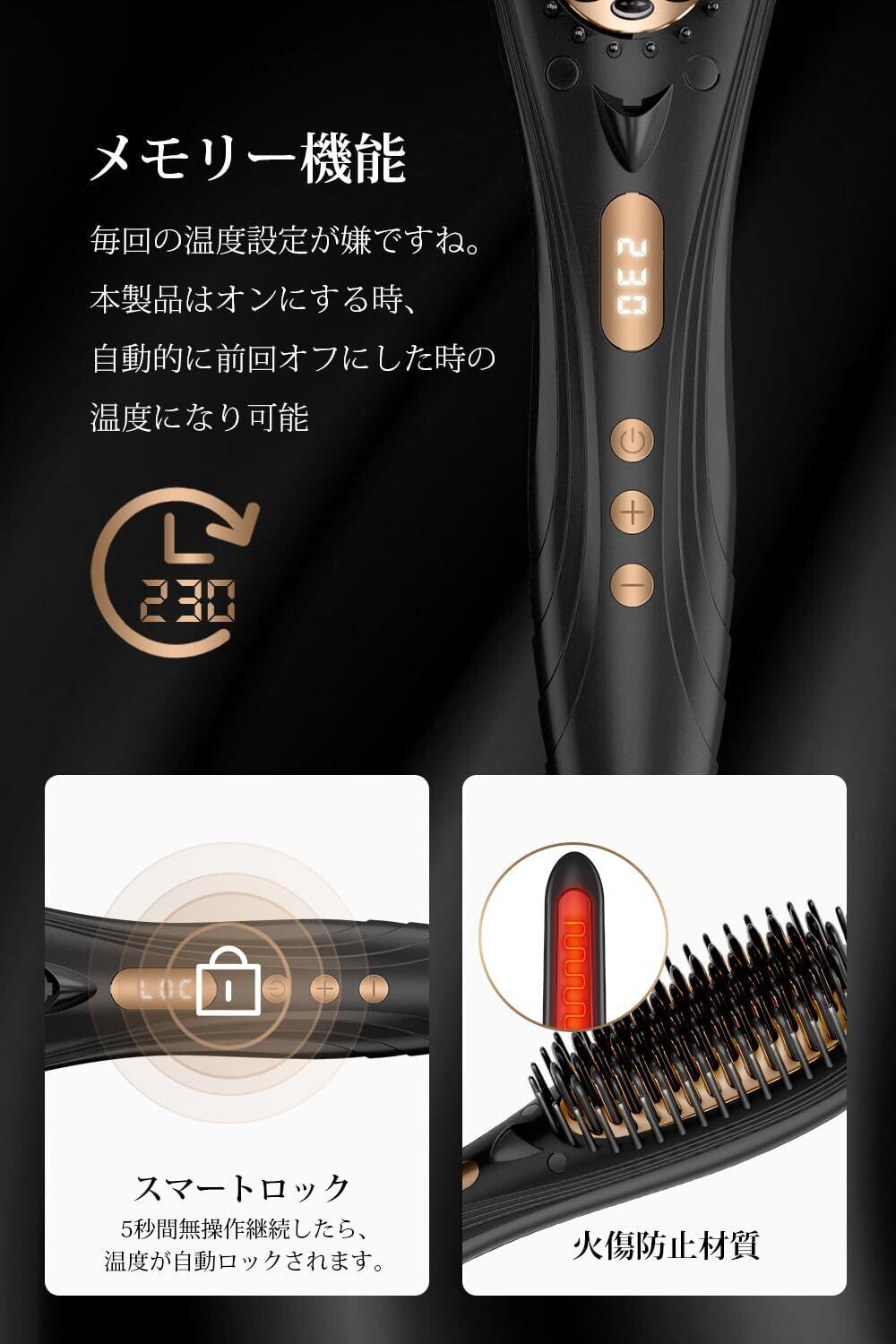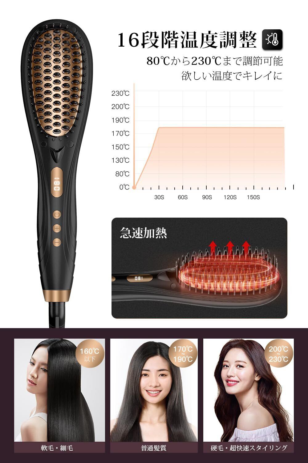 ヘアアイロン ストレートブラシ 【髪しっとりマイナスイオン・80℃~230℃温度調節】 ヒートブラシ LEDパネル搭載 静電気防止・火傷防止 16段階温度設定 MAX230℃ ツヤ髪仕上げ ブラシアイロン 電熱ヘアブラシ 自動ロック・自動オフ機能 使いやすさ重視の温度メモリー 誤作動防止 男女兼用 耐熱軍手付属 日本語取扱説明書
