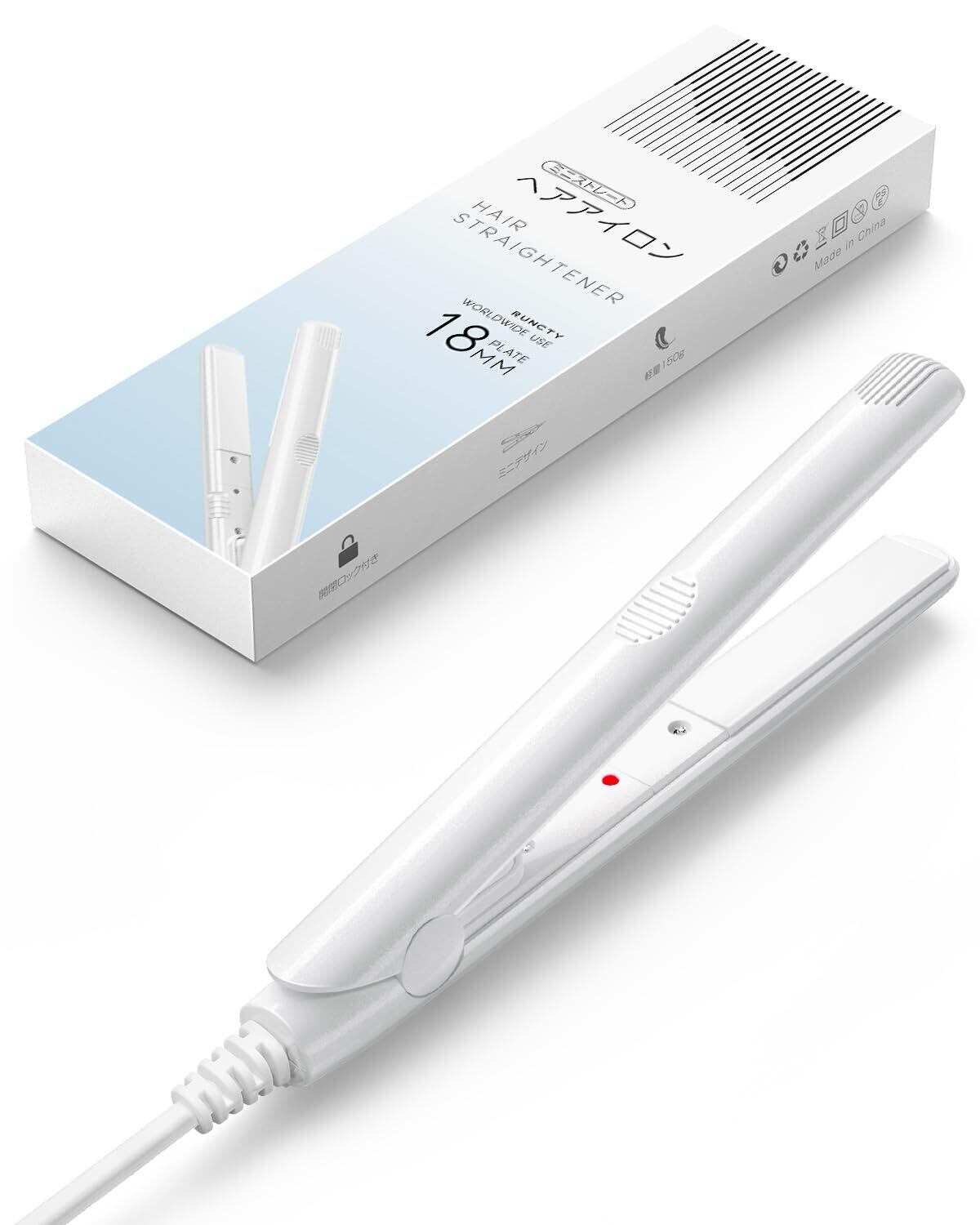 ヘアアイロン ミニ ストレートアイロン 18mm 恒温220℃ 急速加熱 マイナスイオンヘアアイロン ツヤ髪 ヘアケア 軽量 コンパクト 持ち運び便利 ヘアスタイリング ワンタッチロック付き 海外対応 レディース メンズ 誕生日 プレゼント (ホワイト)
