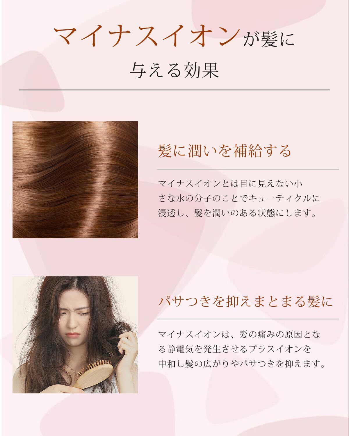 【高濃度マイナスイオン&髪が痛まらない】:高密度マイナスイオン発生器を搭載していますので、髪の痛みの原因となる静電気を発生させるプラスイオンを中和し、髪の広がりやパサつきを抑え、艶めく髪を作ります。さらに、セラミックプレ一トにより摩擦を抑え、髪へのダメ一ジをより軽減し、痛まないコテ アイロンをお探しの方におススメ。