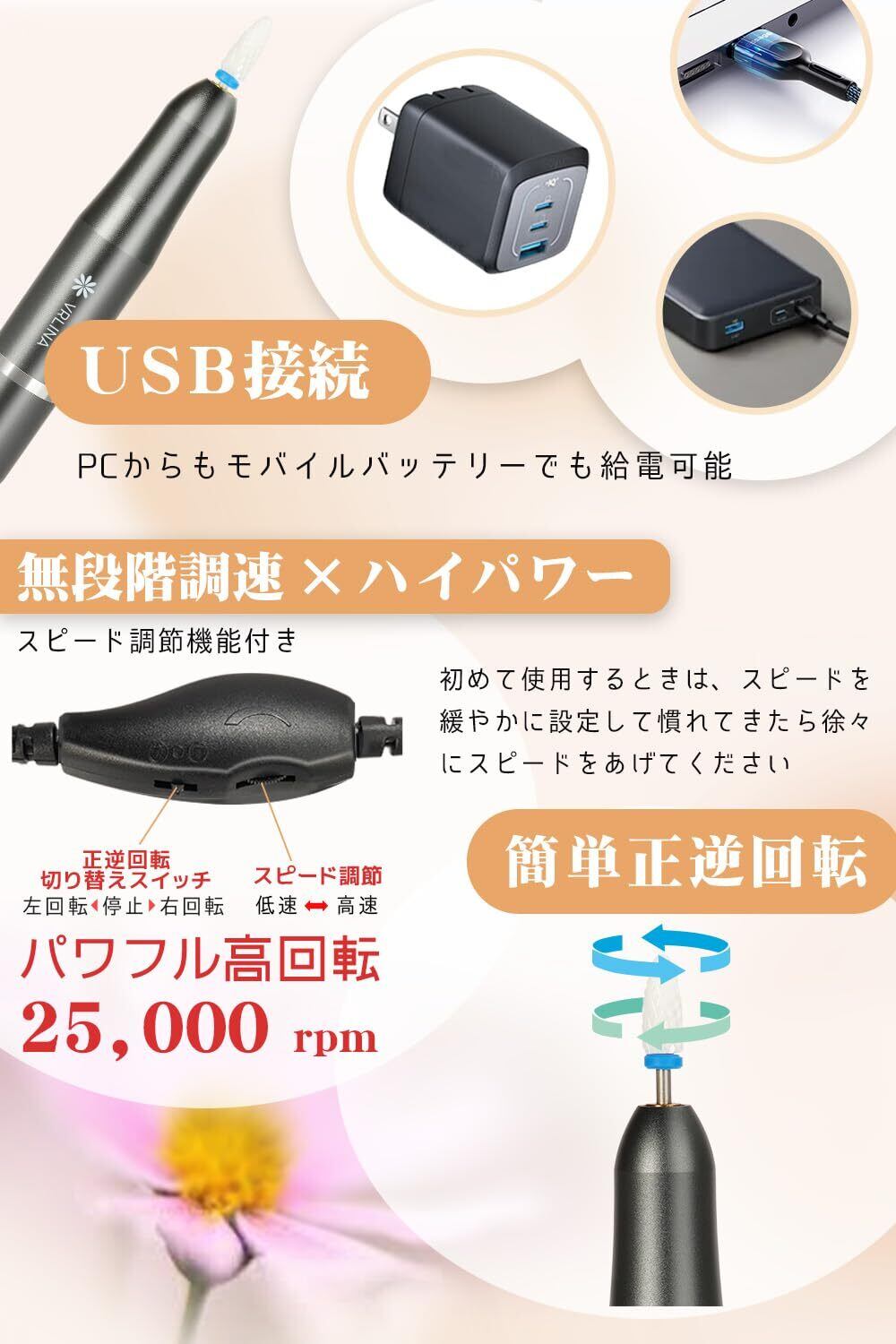 【在庫セール】【ネイリスト推薦】 ネイルマシン ジェルネイル オフ 13点セット 電動ネイルマシン リムーバー ビット ネイルケア 爪磨き 甘皮処理 セルフ 最大25000rpm 正逆回転 無段階調速 USB給電 セルフオフ サロン プロ仕様 日本語取扱書付き (グレー)