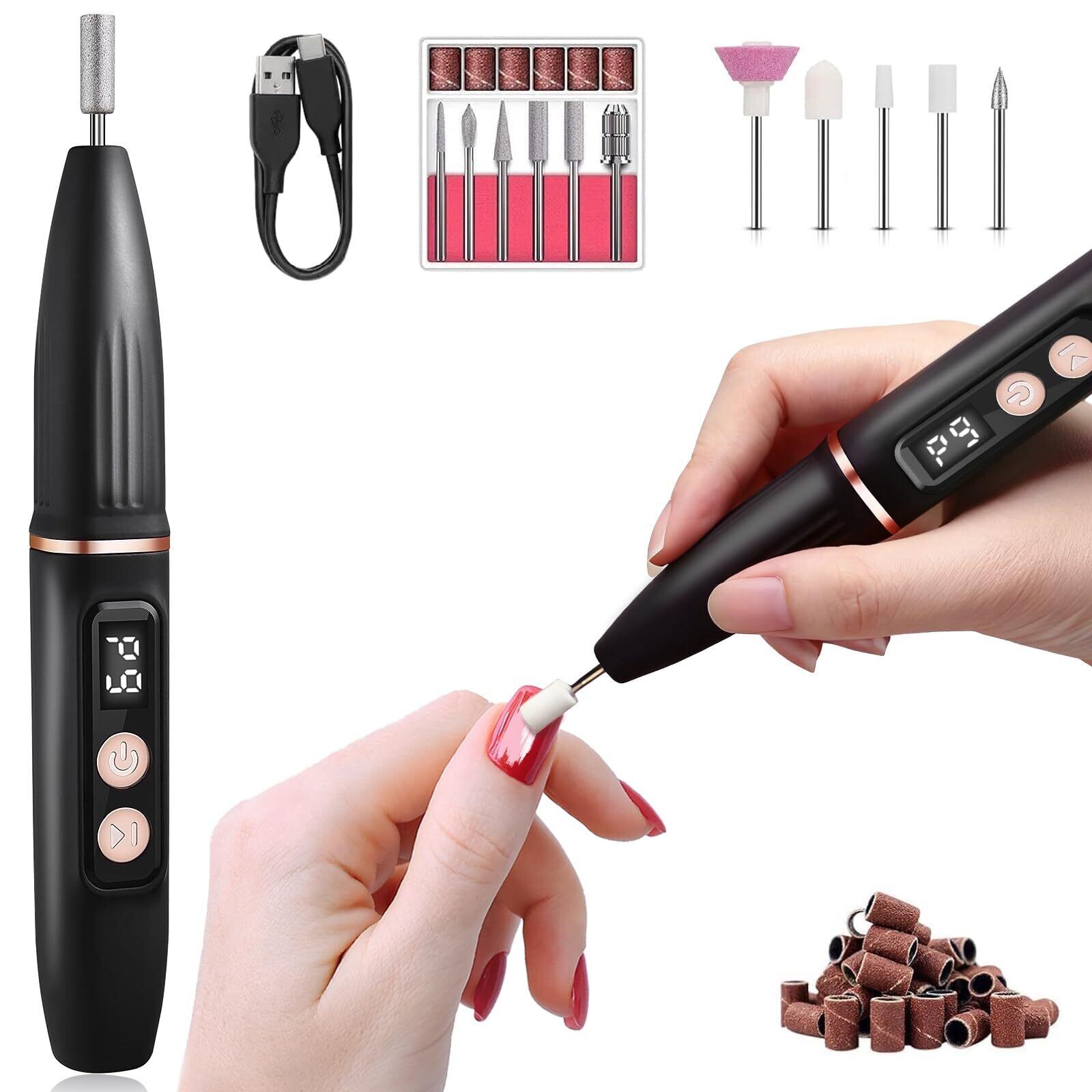 【USB クイックチャージ&超軽量ポータブルボディ】USB 充電設計を採用し、主流の充電機器に対応しています。2 時間で満充電すると 180 分間連続使用が可能で、同時に充電しながらの使用にも対応しており、家庭での日常ケアや商業サロンでの使用シーンのニーズを両方満たします。本体重量はわずか 90g で、コンパクトなポータブル設計を採用し、メイクバッグや旅行鞄に簡単に収納でき、外出や出張時にもいつでもネイルケアを行えます。