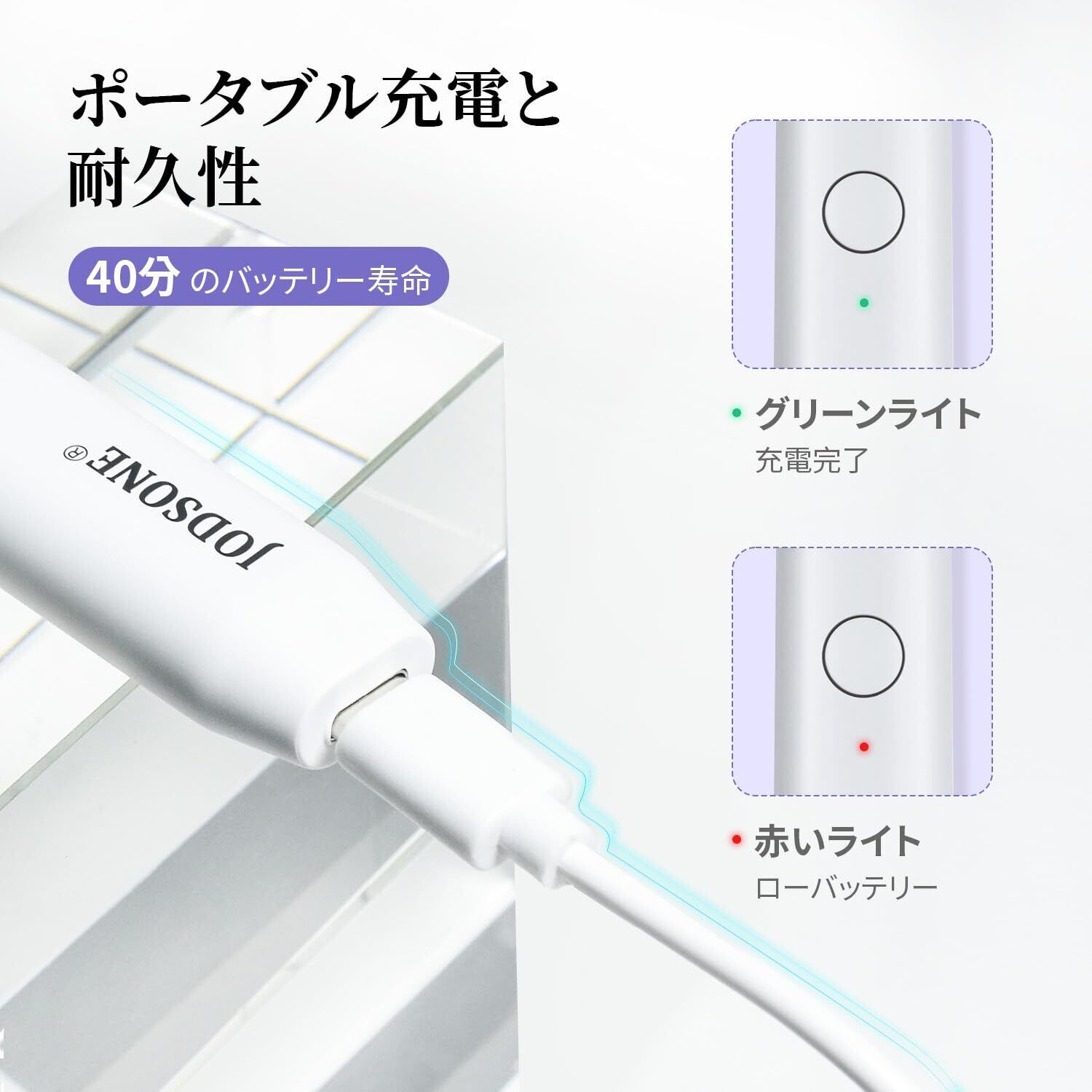 JODSONEジェルネイル用ハンドヘルドU Vライト ポータブルミニネイルドライヤー コードレス充電式USBネイルドライヤー ホームDIYマニキュアネイルアート用高速硬化、ホワイト