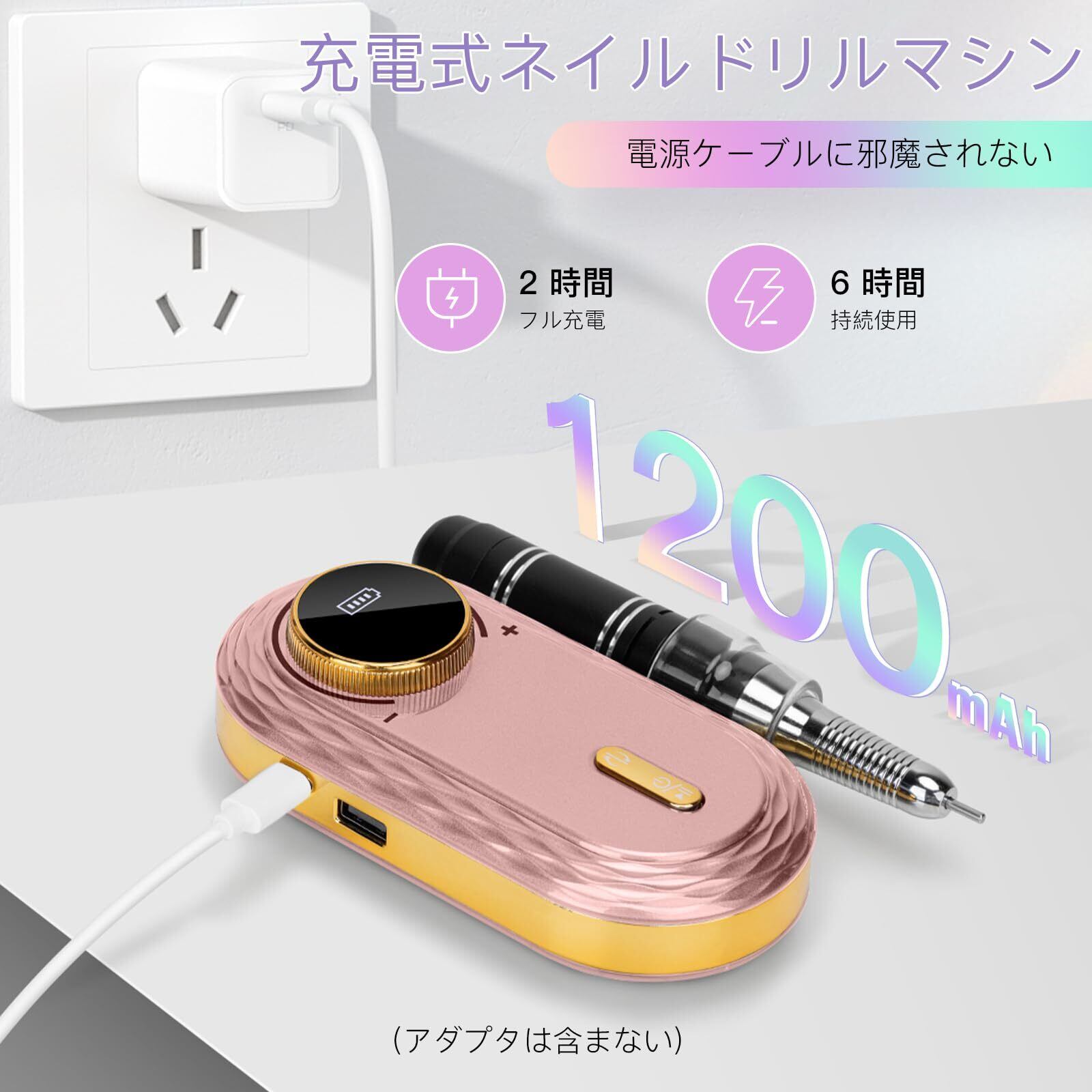 Madenia 充電式 電動ネイルマシン プロ用: 35000RPM アップグレード版 ポータブル ビット付け ネイルマシーン アクリルネイル 高速回転 正逆回転 無階段変速 一時止め プロネイルマシン ネイルケア 初心者可 ネイルサロン 自宅用 ネイルビット&サンディングバンド付け ピンク