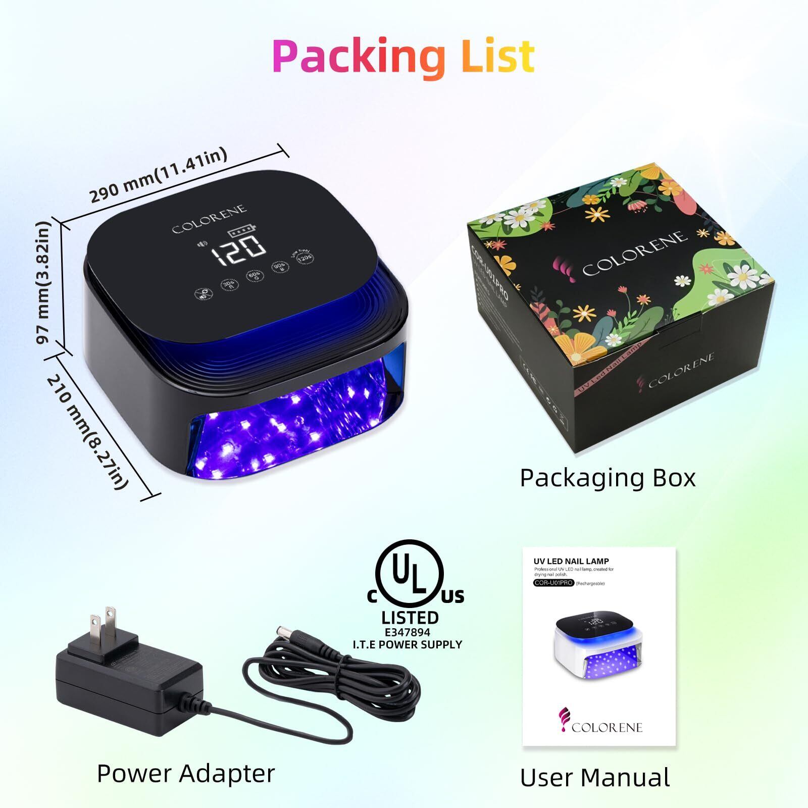 【充電式&コードレス】COLORENE コードレス UV LED ネイルランプは内蔵充電式バッテリーを備えており、3 時間充電して 3 - 4 時間使用できます。コードに惑わされることなく、どこでもお楽しみいただけます。