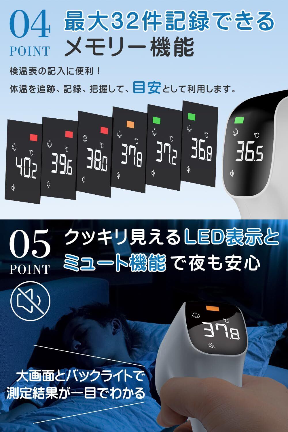 メディケン(MEDIKEN) 非接触式 電子温度計 赤外線:1秒測定 32回記録 非接触温度 手軽 多機能