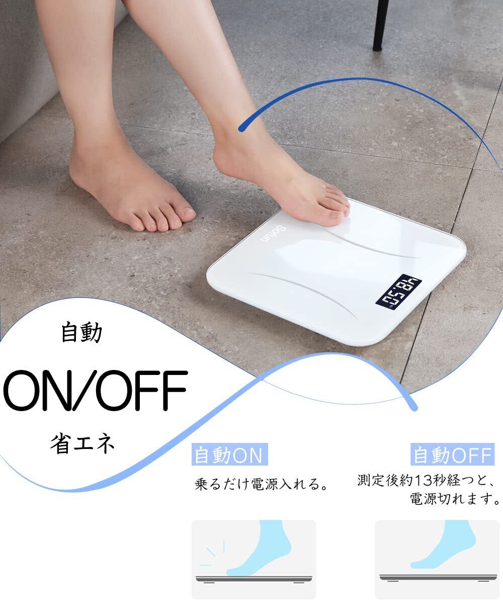 【測定簡単・乗るだけ測定】こちらの 体重計 は乗るだけで自動で電源オンし、起動設定の手間がなく、素早く体重測定ができます。無測定により自動オフもされ、かなり省エネな体重計です。家族や父の日や母の日などお祝いプレゼントも最適です。