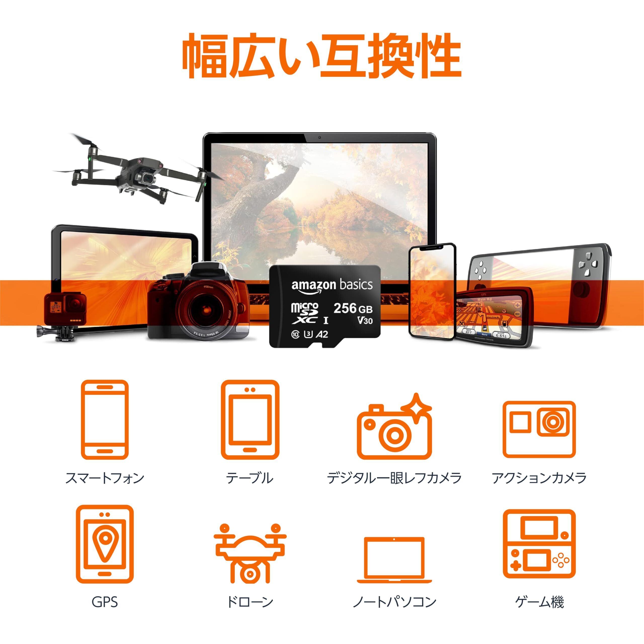 スマートフォン、タブレット、カメラ、GoPro/Action カメラ、ノートパソコン、コンピューター、デジタル一眼レフ、ドローン、ゲーム機などに対応しています。このMicro SDカードはNintendoSwitch 2には対応していません。