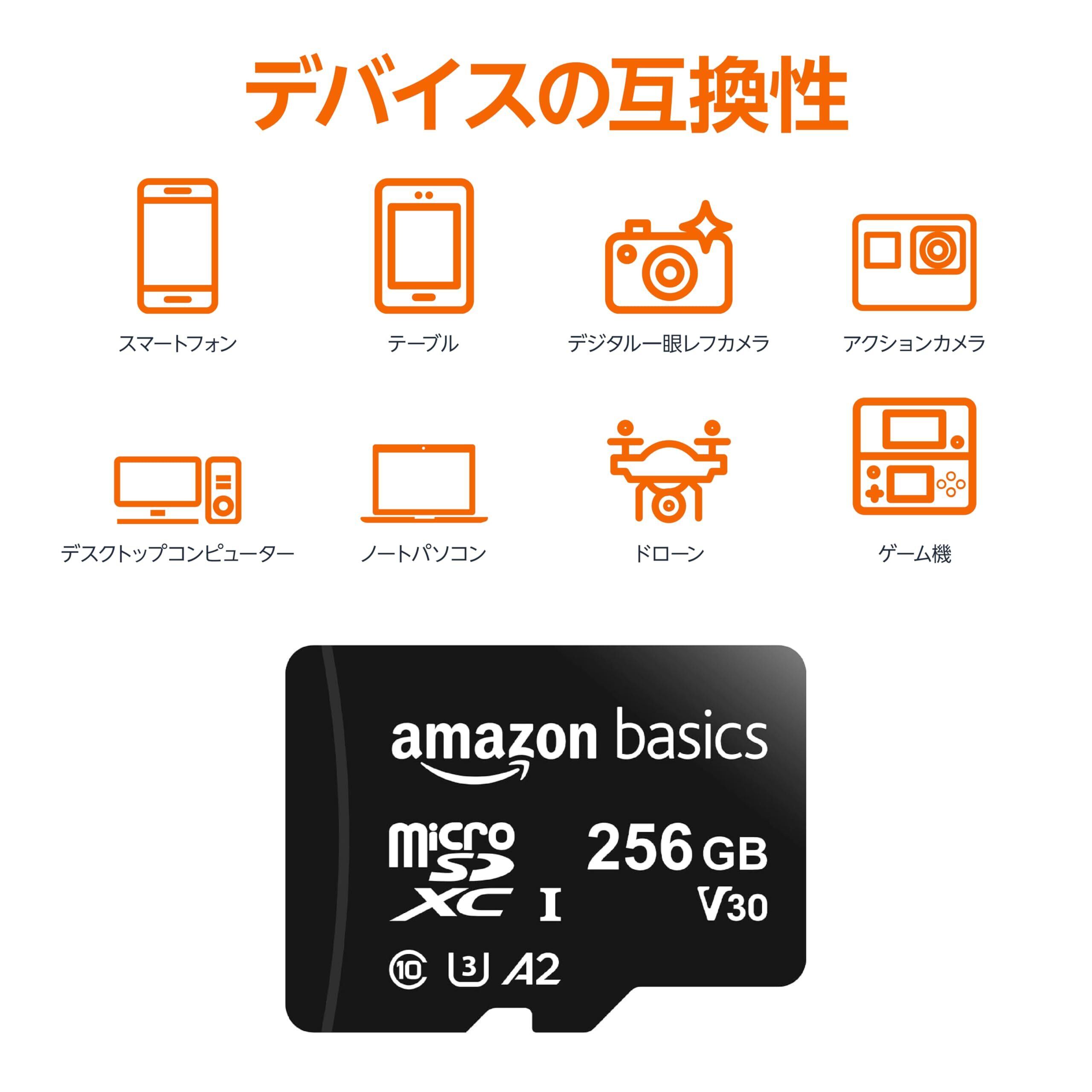 幅広い互換性: スマートフォン、タブレット、カメラ、 GoPro/actionカメラ、ノートパソコン、デスクトップパソコン、デジタル一眼レフ、ドローン、Nintendo Switch/その他のポータブルコンソールなどに対応。このマイクロSDカードは、Nintendo Switch 2に対応していません。