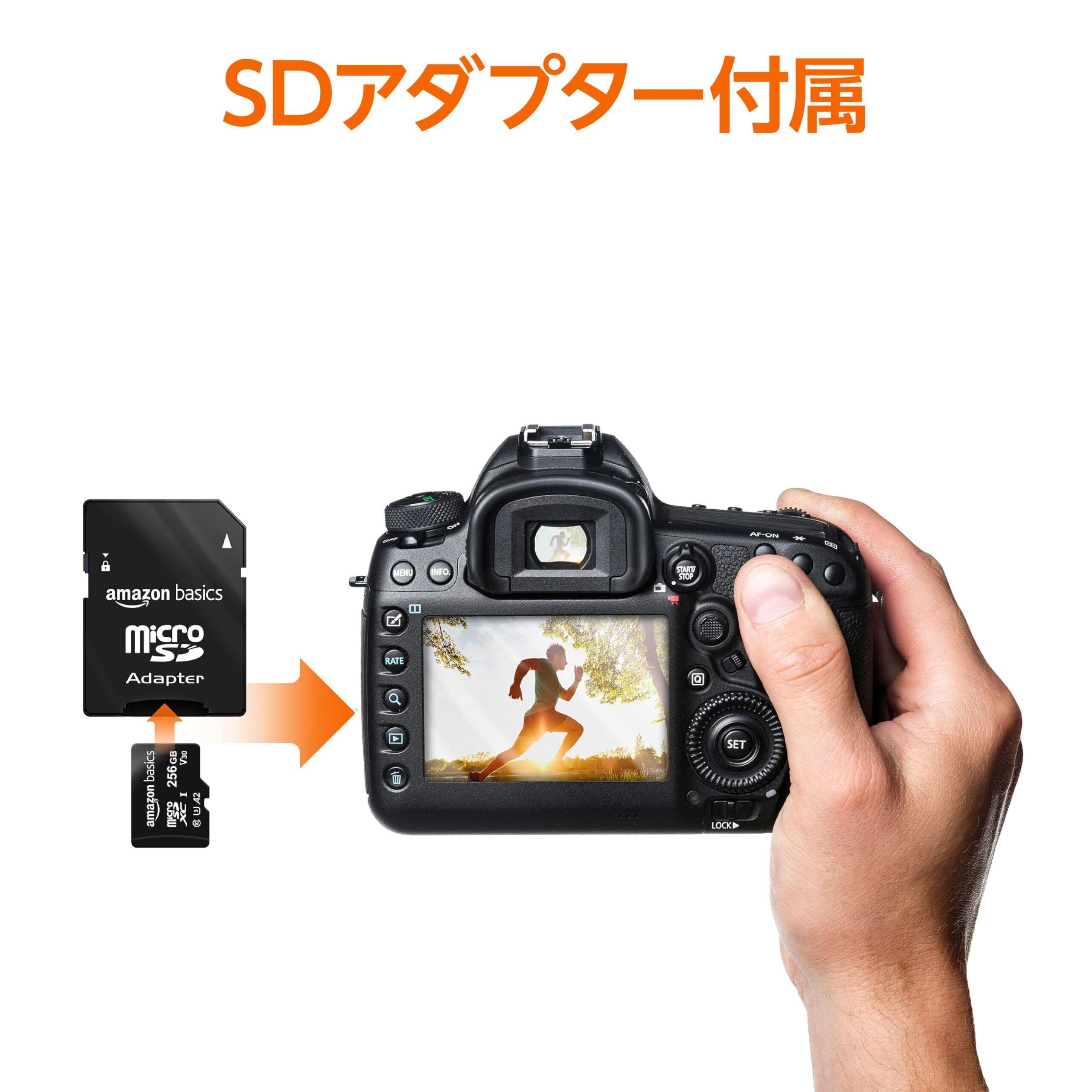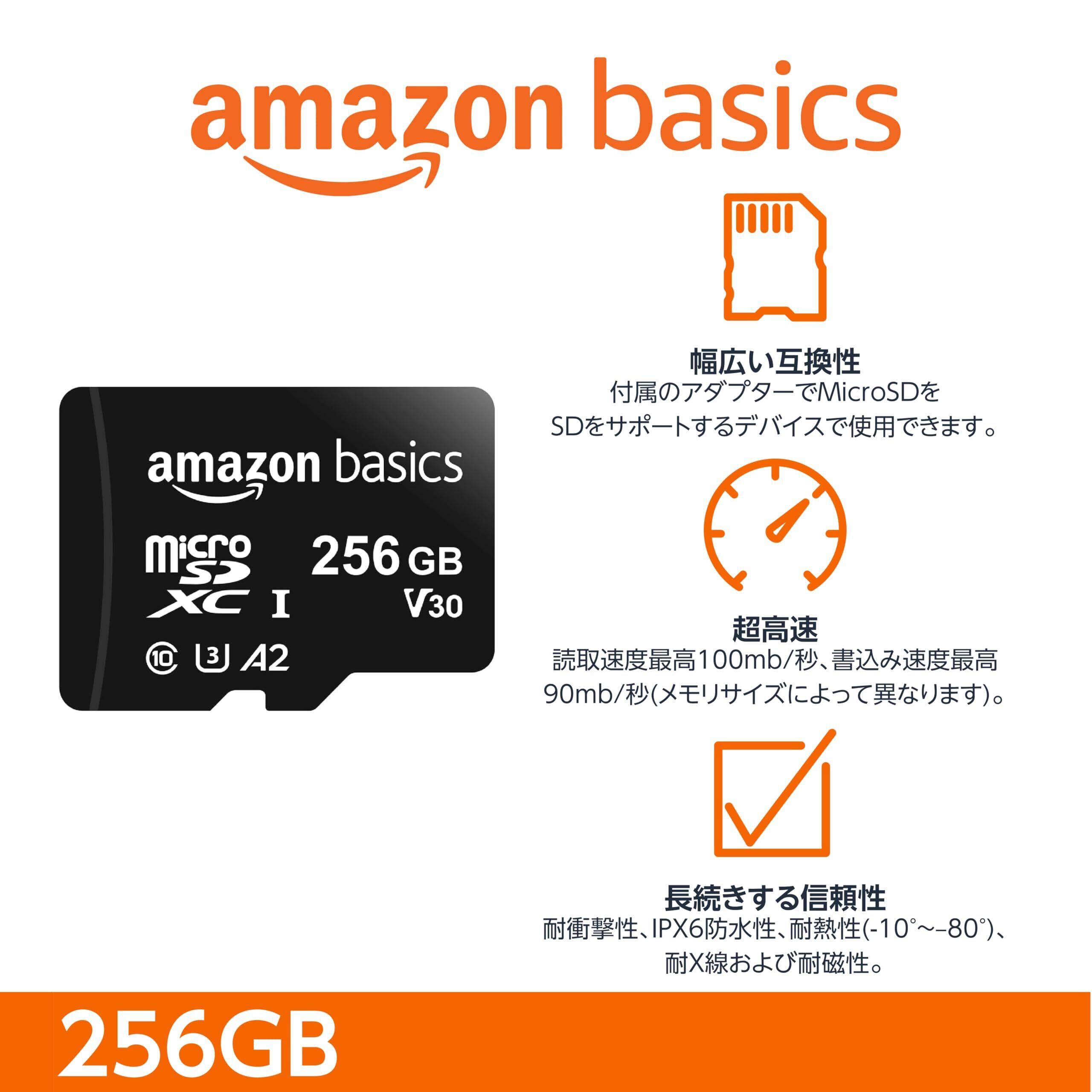 ベーシック microSDXC メモリーカード 256GB フルサイズアダプター付き A2 U3 読み込み速度最大100MB/秒 ブラック