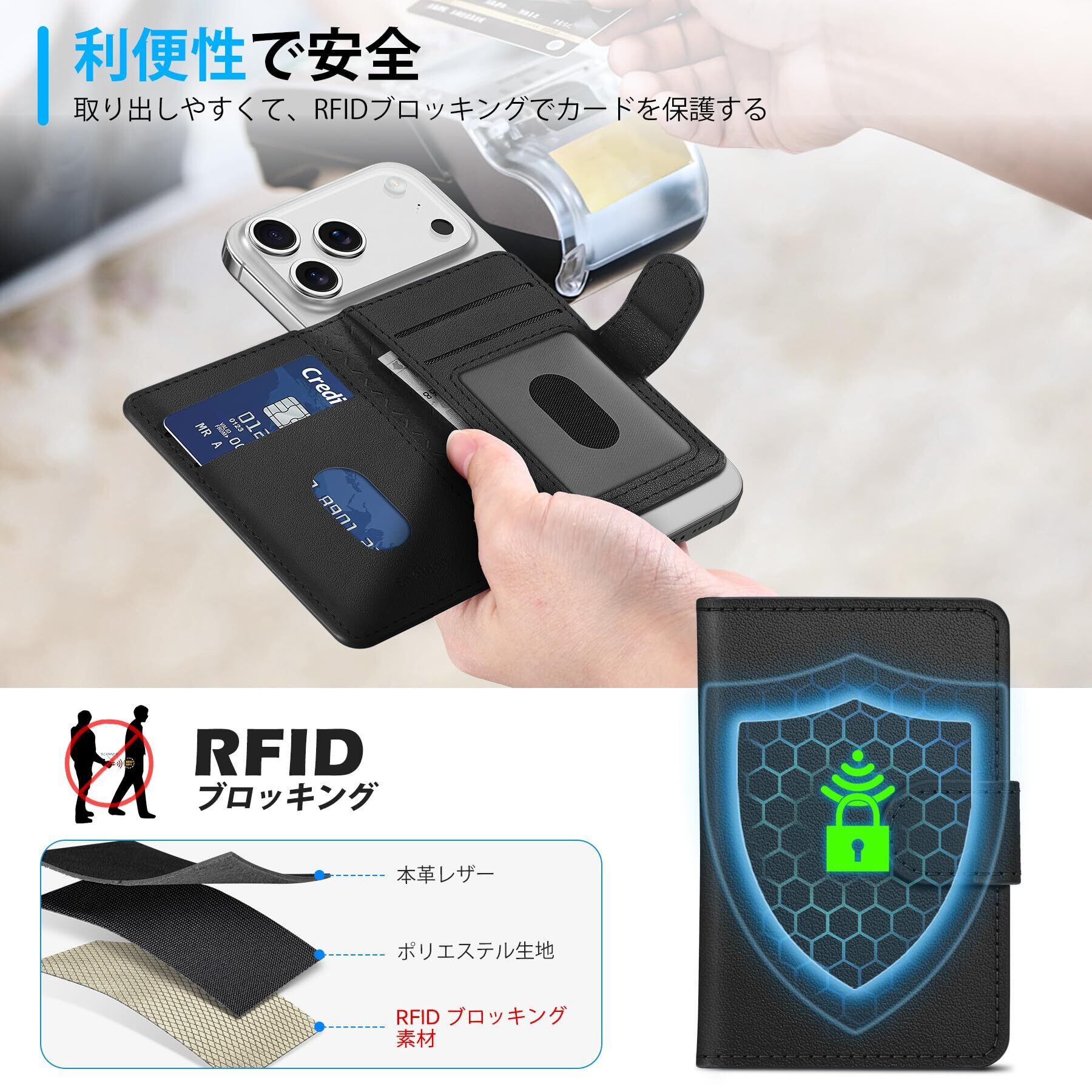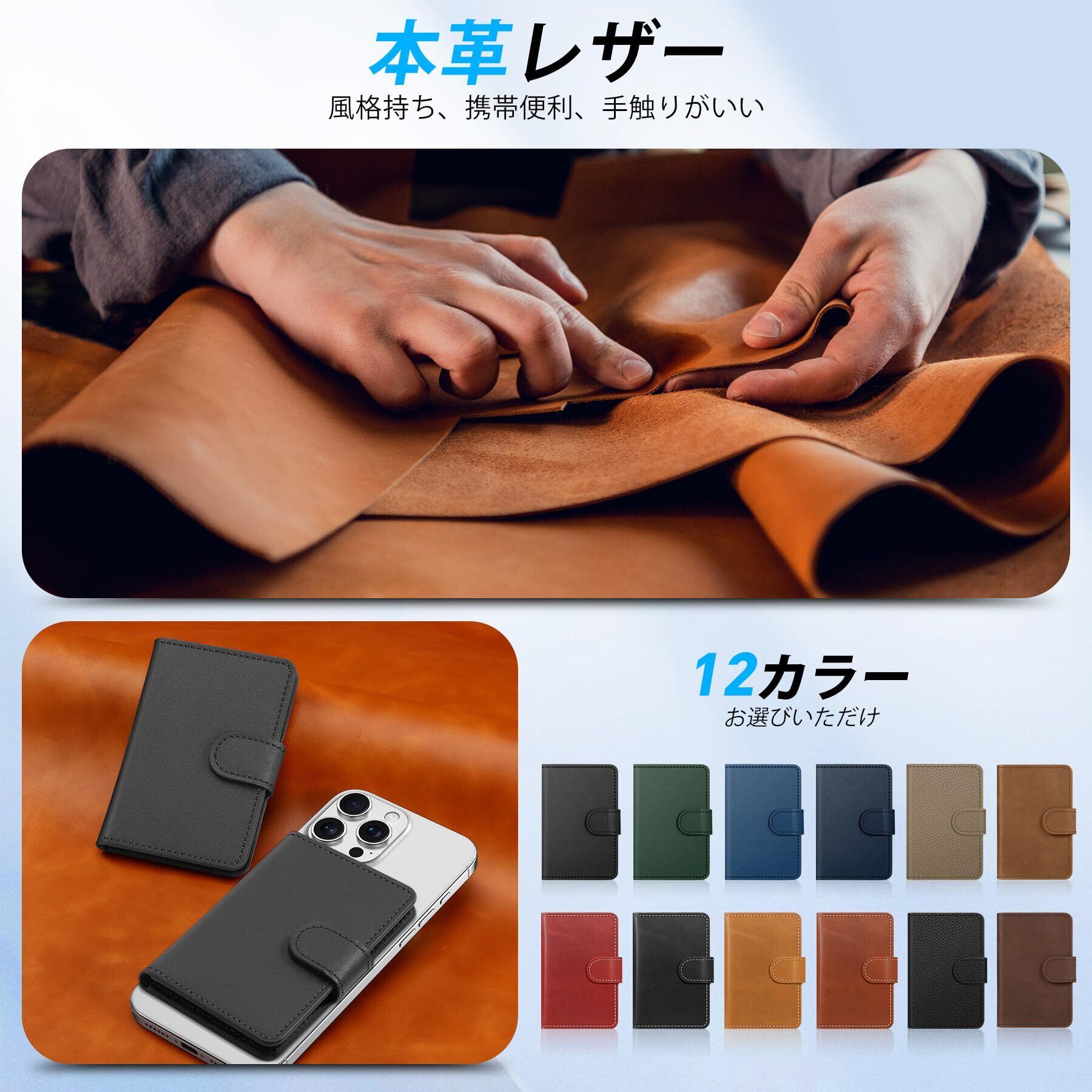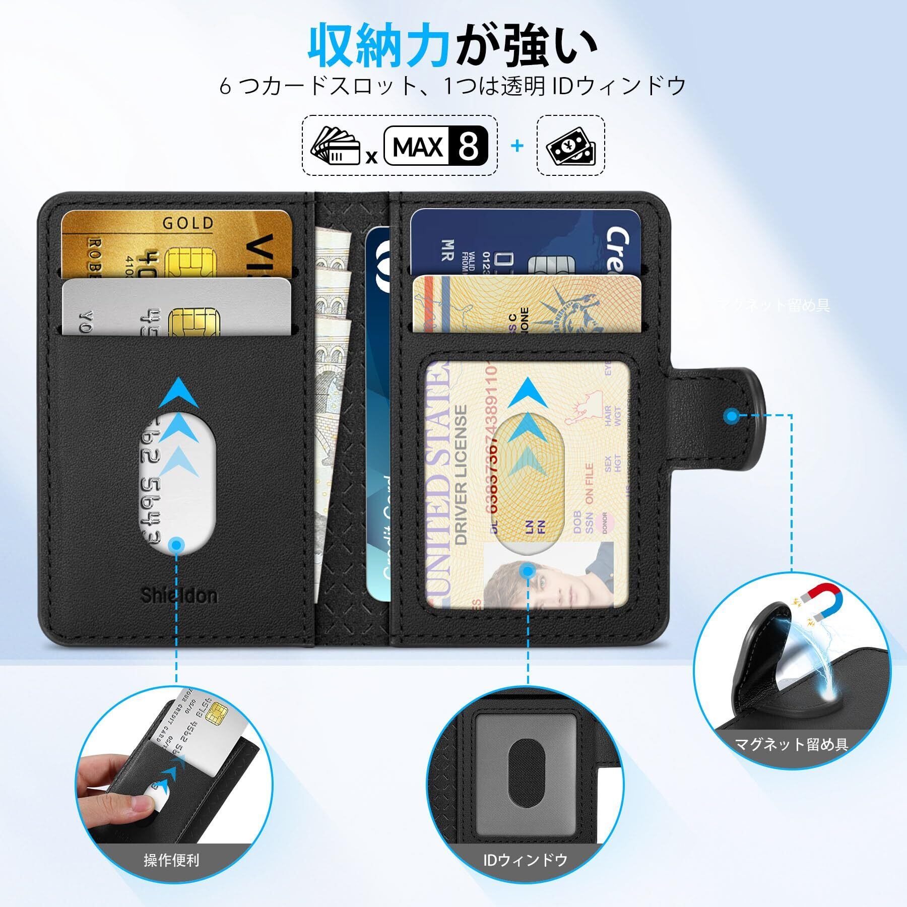SHIELDON スマホカードケース 本革レザー 6枚カード収納 磁力吸着 [RFIDブロッキング] 磁力ケースとiPhone17/16/15/14/13/12/Air/Plus/Pro/Pro Max シリーズ対応 ブラック