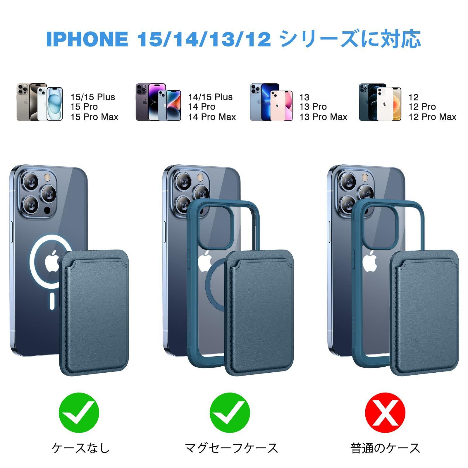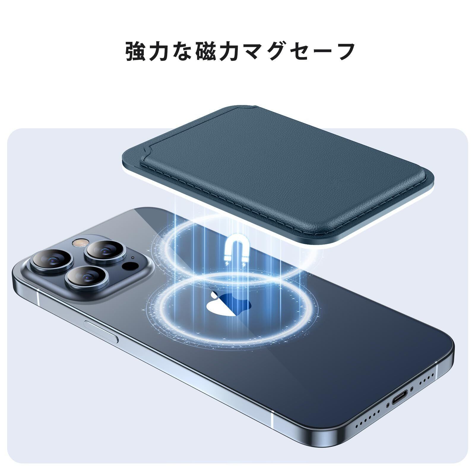 Miracase MagSafe 対応 カードケース スマホ カードホルダー レザーカードウォレットホルダー iPhone 16/15/14/13/12シリーズに対応 カード入れ 強力磁力 3枚 カード収納 マグネット内蔵 ブルー