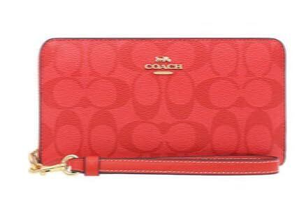 [CocoLeza] レディース 長財布 ラグジュアリー シグネチャー ロング ジップ アラウンド ウォレット ラウンドファスナー ストラップ付 アウトレット品 (マイアミレッド) [並行輸入品]