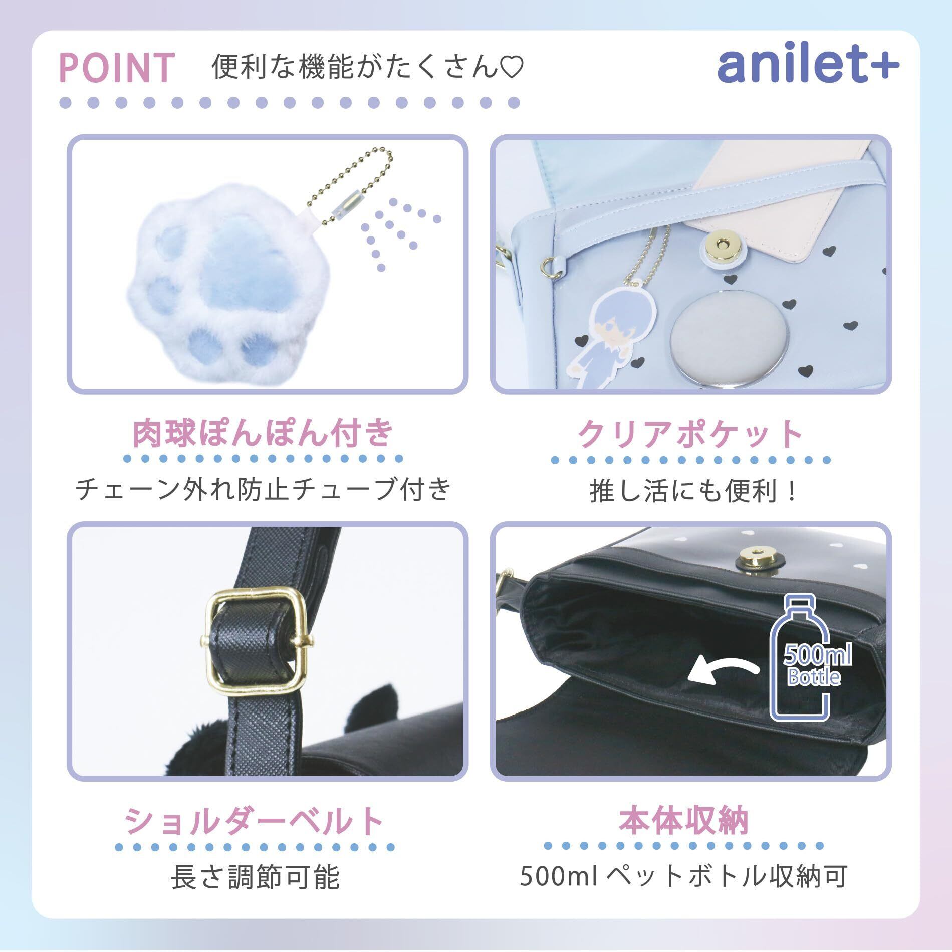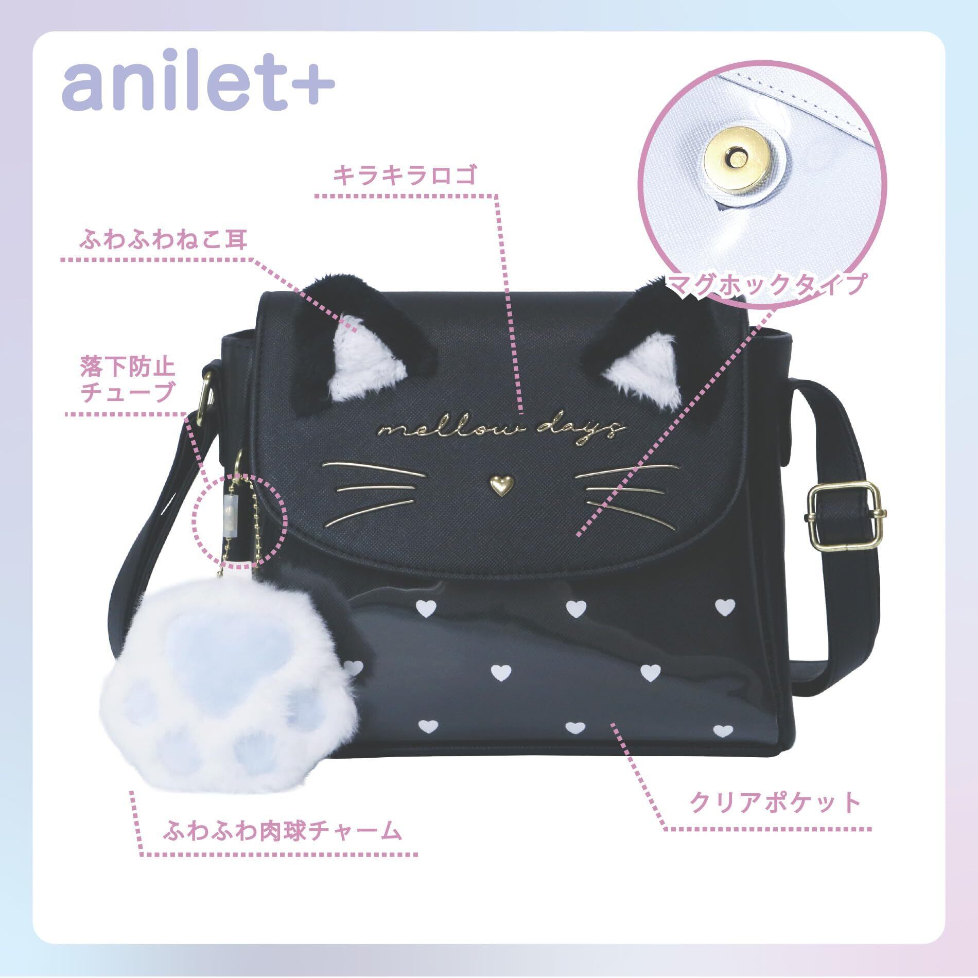 [anilet+] ショルダーバッグ バッグ ネコ耳 猫 ねこ ポシェット 肉球 女の子 小学生 キッズ ガールズ 通学 通園