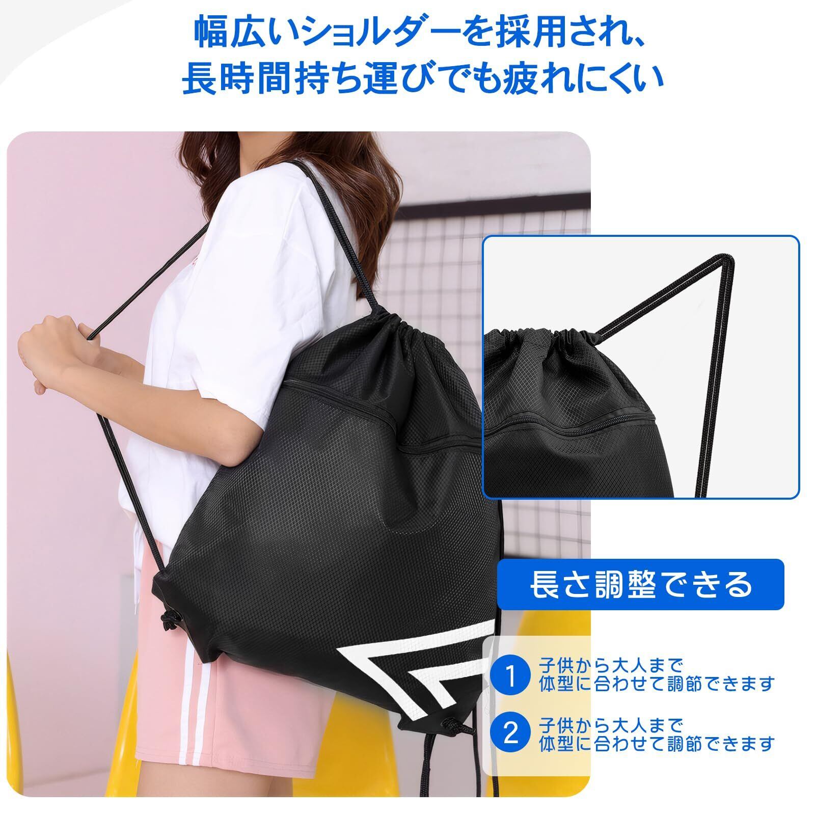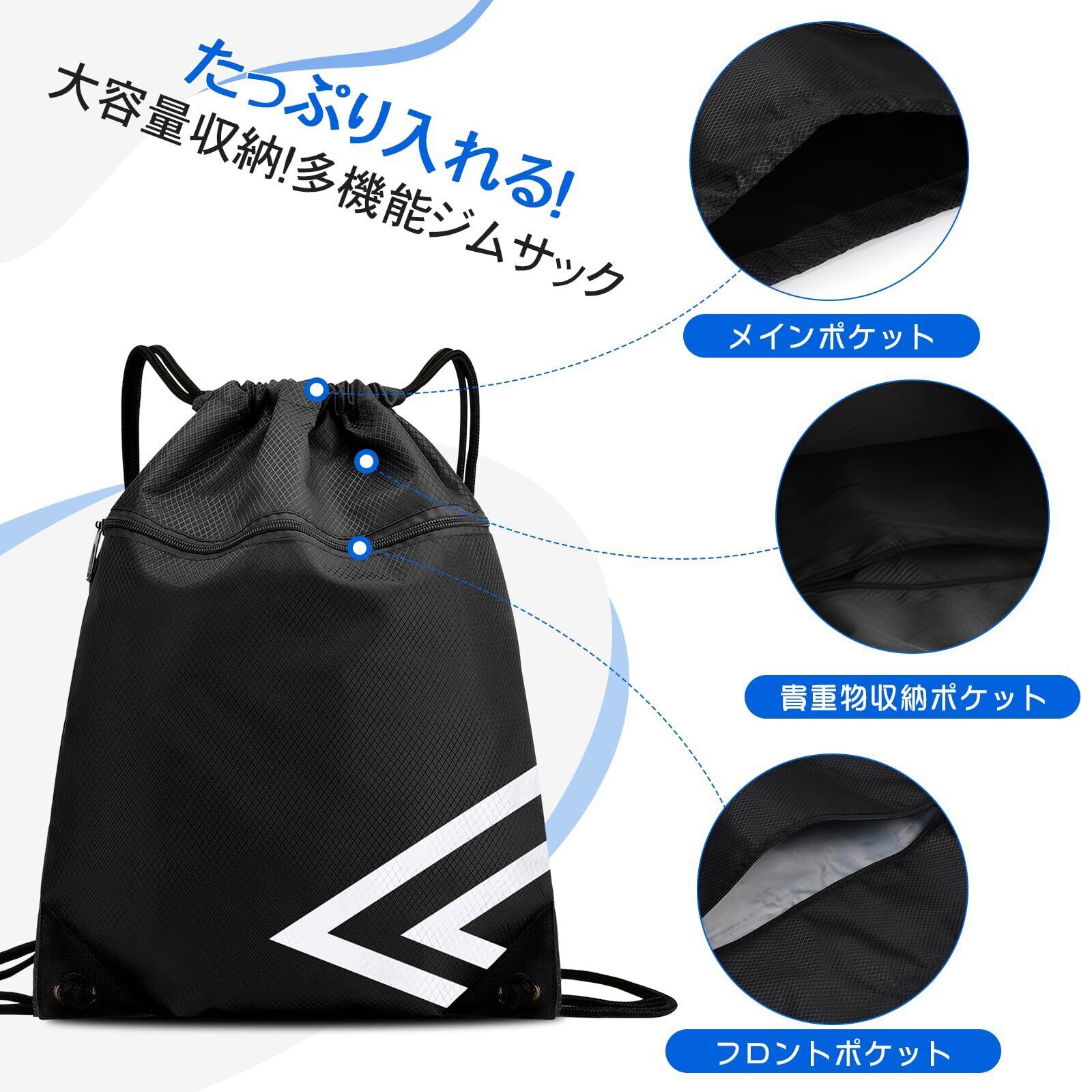 【2022最新】[GOHHME] ジムサック ナップサック 大きめ プールバッグ 巾着袋 防水 軽量 折り畳み エコバッグ多機能 シューズ収納 バッグ 大容量 運動 旅行 部活 水泳 アウトドア (ブラック)