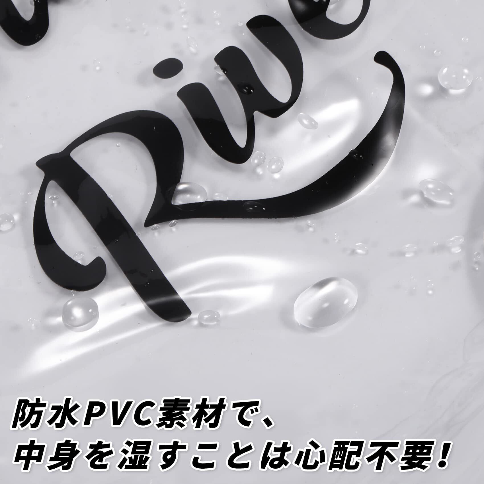 水に強いPVC素材:透明バッグは汚れや水を弾くPVC素材を使用しており、濡れたタオルや水辺での使用にも適しています。また、素材の特性上、新品時にはにおいを感じる場合がありますが、ご使用前に陰干ししていただくと軽減されます