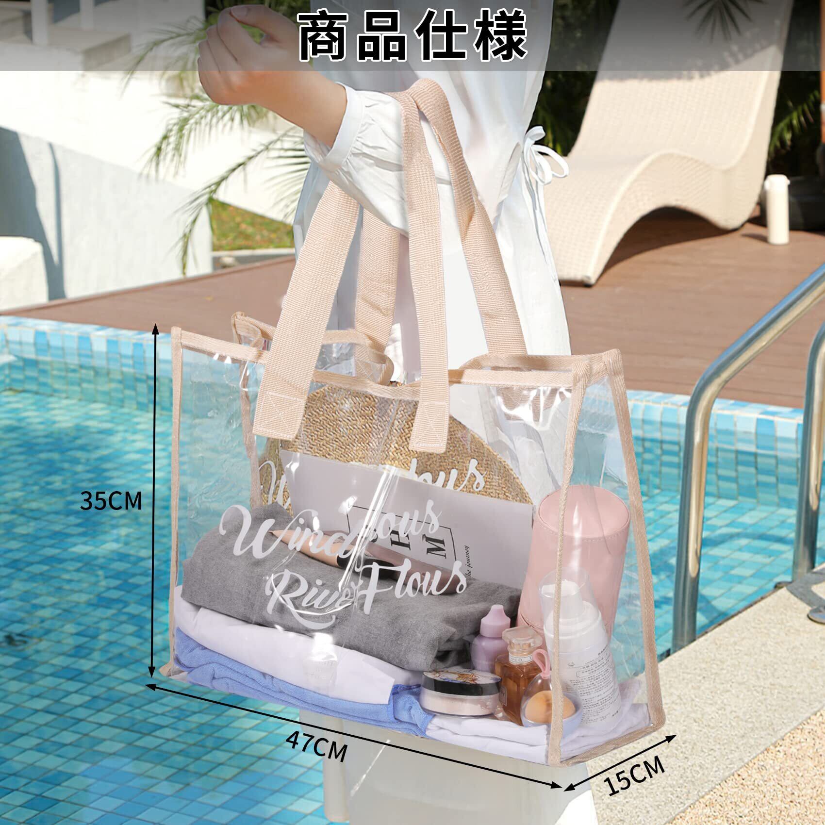 Annhua ビニールバッグ 透明 プールバッグ 大人 PVC製 手提げ 肩掛け ビーチバッグ 大容量 軽量 アウトドア用 海水浴 47×15×35cm