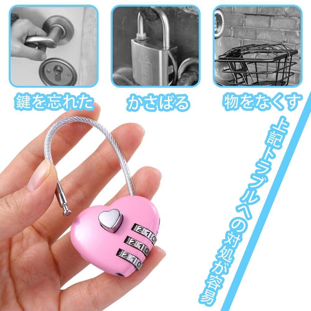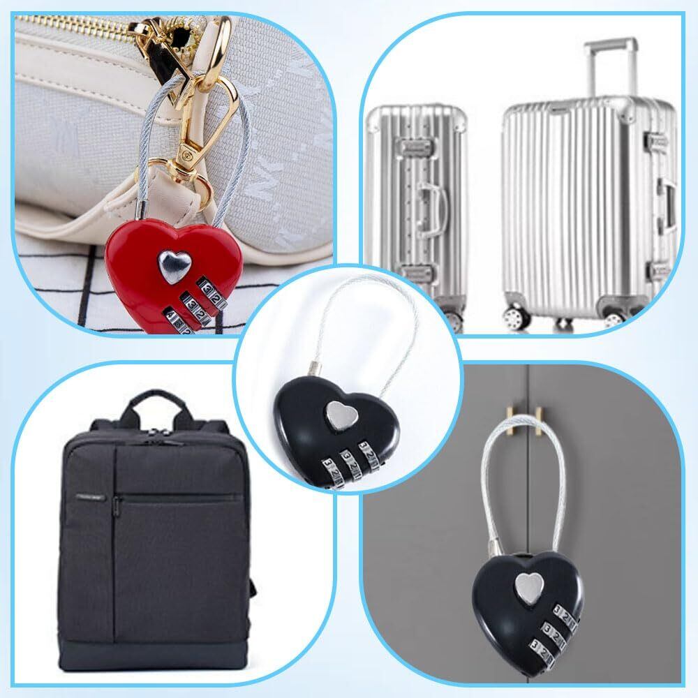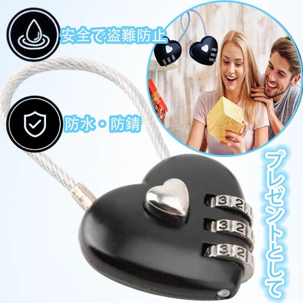 南京錠ワイヤーロック 【2個入り】ワイヤー式 南京錠 ハート ダイヤル ワイヤーロープ ハート型ロック 頑丈な盗難防止 軽量 持ち運びが簡単 安全性 旅行 スーツケース ヘルメット 自転車のかご (愛-2つ)
