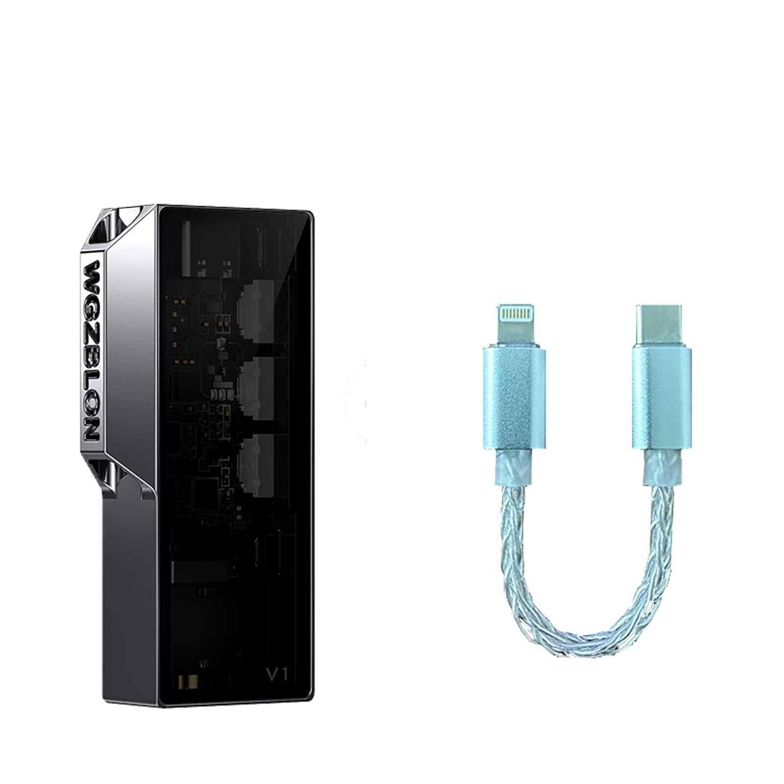 【2022最新】Linsoul WGZBLON星(V1)ポータブルデコーディングヘッドホン用アンプ 2枚のCS43131解析チップは左右チャンネルを独立して解析 TYPE-Cインターフェースの交換可能なケーブル設計 3.5mmステレオ出力ポートと4.4mmバランス出力ポート さまざまなデバイスで使用できハイエンドポータブルアンプ(透明ブラック.タイプC-ライトニングケーブル)