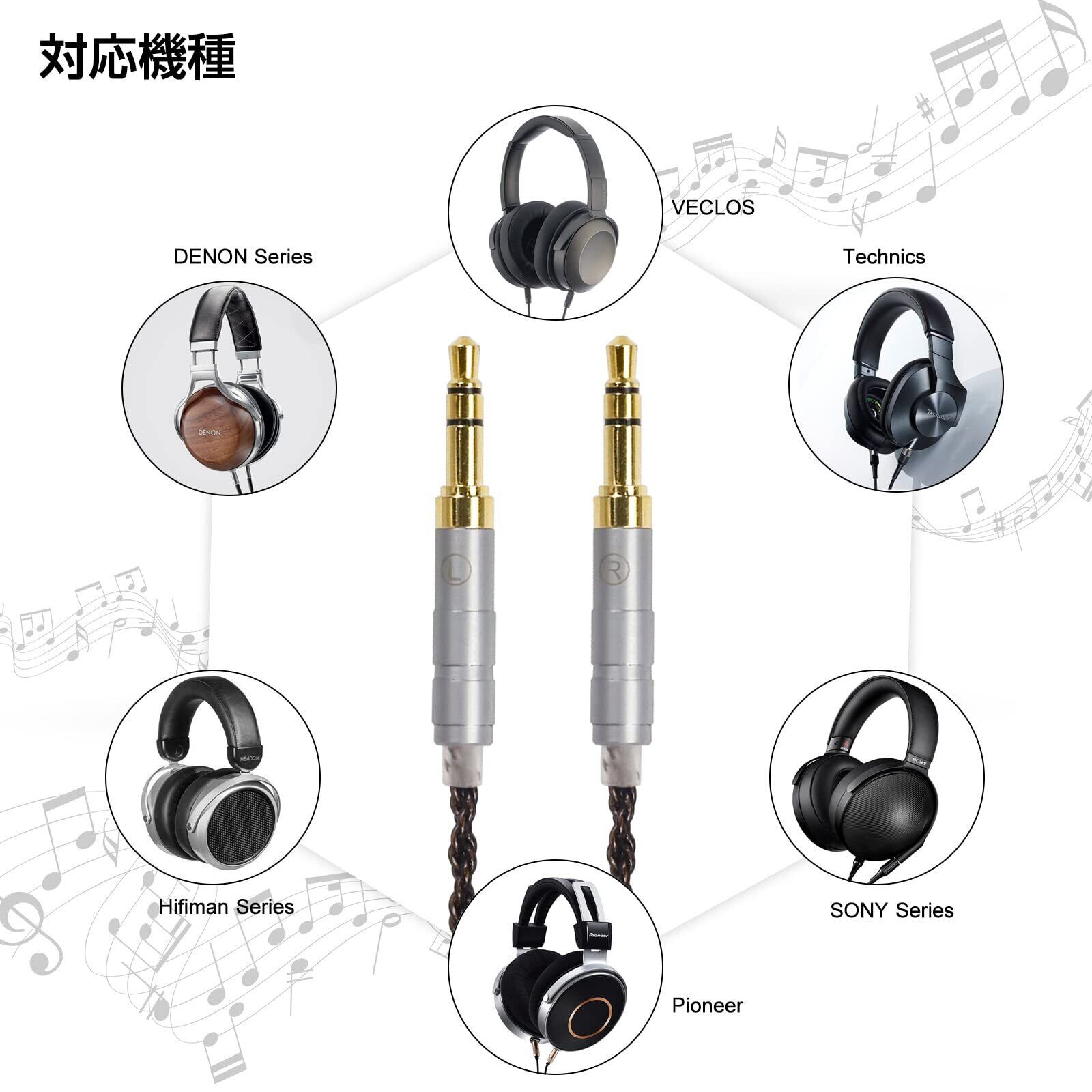 okcsc ZT8 ヘッドホンケーブル 両端3.5mm 交換ケーブル イヤホン・ヘッドホン用 8芯 純銅 Hifiman用 HE4XX・HE-350・HE1000に適合 3.5mmステレオ(3極)⇔3.5mmプラグ(3極)x2