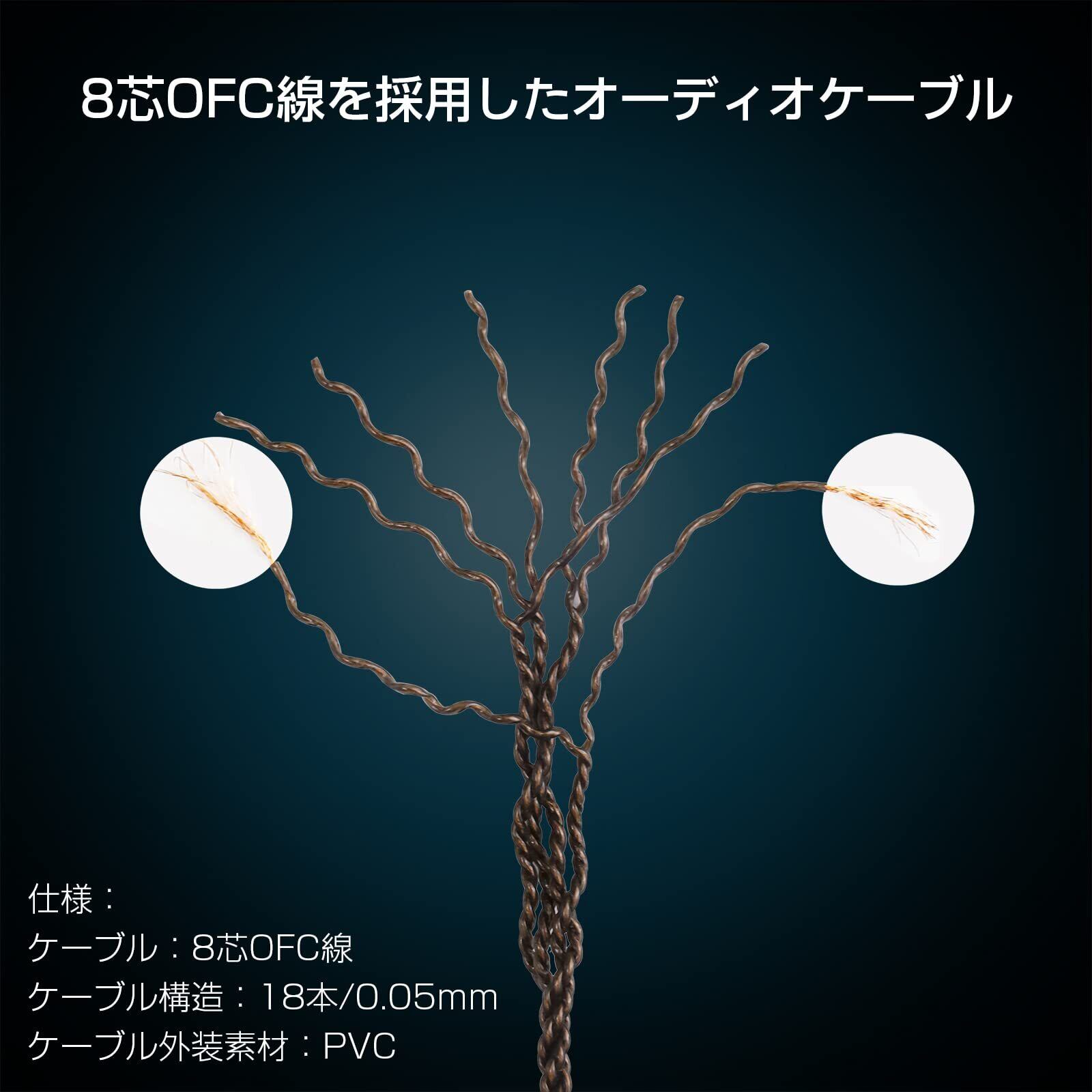 【クリアな音質を実現する】1芯あたりに高純度銅線を18本使用することで、音声信号の伝達における抵抗を排除し、クリアな音質を実現しました。また、8芯構成でケーブルの強度を高めるだけでなく、広いレンジ感を維持し、自然でありながらも空間表現力を向上します。