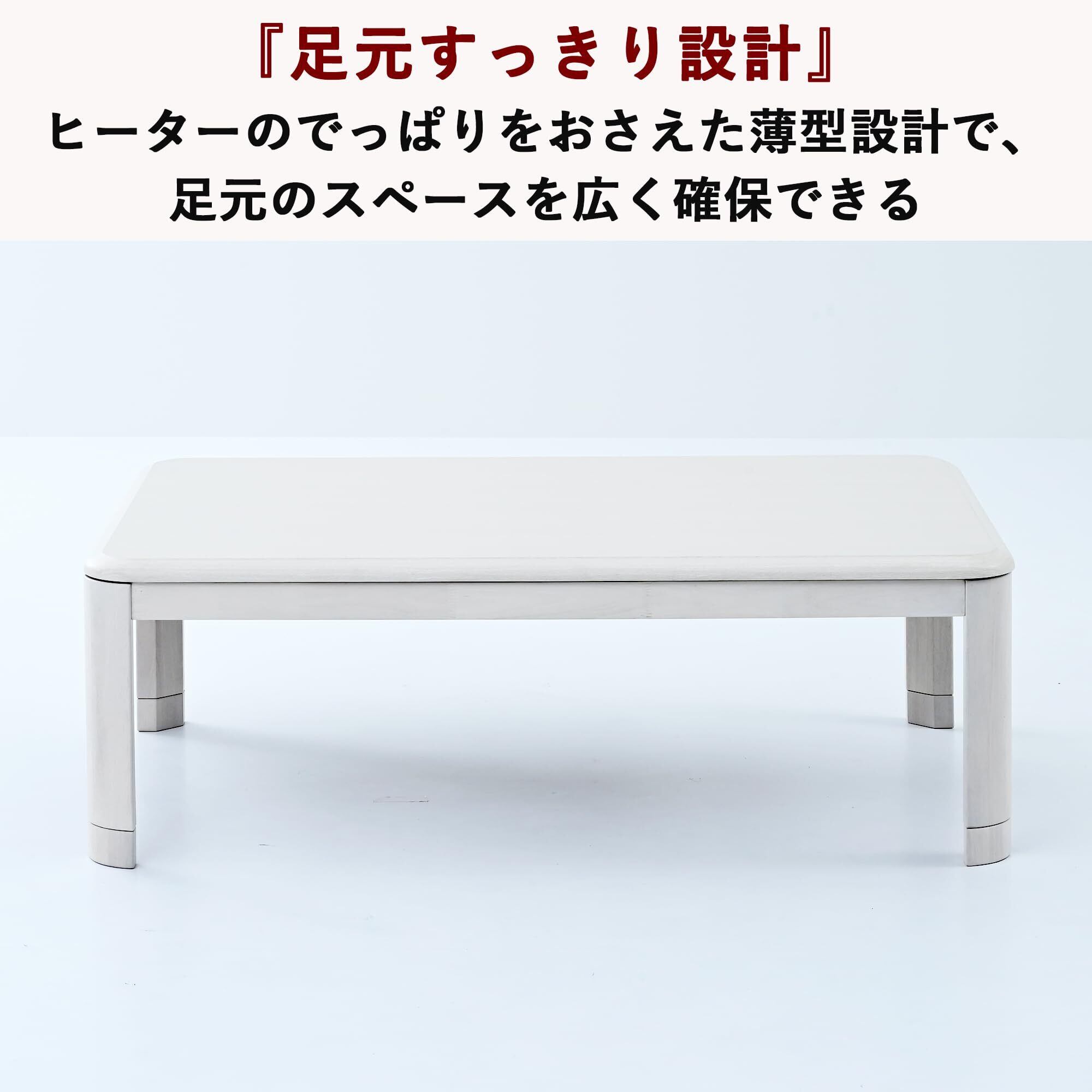 [山善] 家具調 こたつ テーブル 幅120×奥行80cm 長方形 天然木 ファン付きヒーター 継脚タイプ 高さ2段階調整 中間入切スイッチ コード収納ボックス付 ホワイト WG-F1205H(WW)