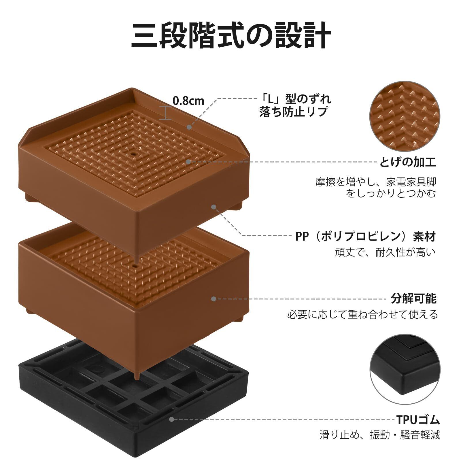 【在庫処分】テーブル 高さ調整 机 7.4-4センチ かさ上げ こたつ 足 テーブル 脚 継ぎ足し ベッド ソファー そこあげ こたつの高さを上げる足 家具・家電 高さ調整器具 滑り止め 掃除しやすい 耐荷重1000kg 4個セット(ブラウン 三段式)