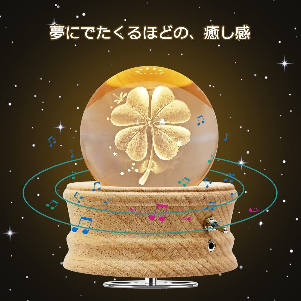 オルゴール 【正規品】 誕生日プレゼント 幸運のクローバー クリスタル ボール クリスマス ギフト スノードーム バレンタインデー 月のランプ 彼女 間接照明 ベッドサイドランプ LEDライト USB充電 投影機能 インテリア おしゃれ 木製 手作り結婚祝い 卒業祝い 記念日 女性 雑貨 かわいい 癒しグッズ 投影効果 曲目:君をのせて