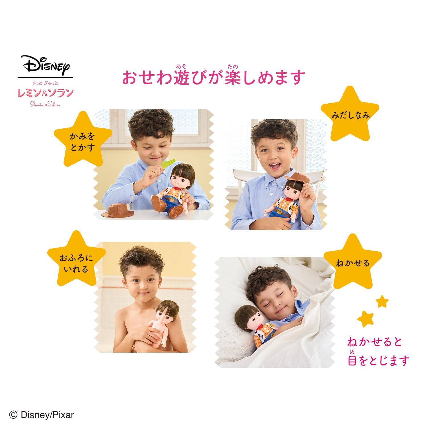 トイ・ストーリーのウッディをイメージした洋服と帽子に加え、くしやめがねもついており、トイ・ストーリーの世界観の中で、基本的なお世話遊びが楽しめます。