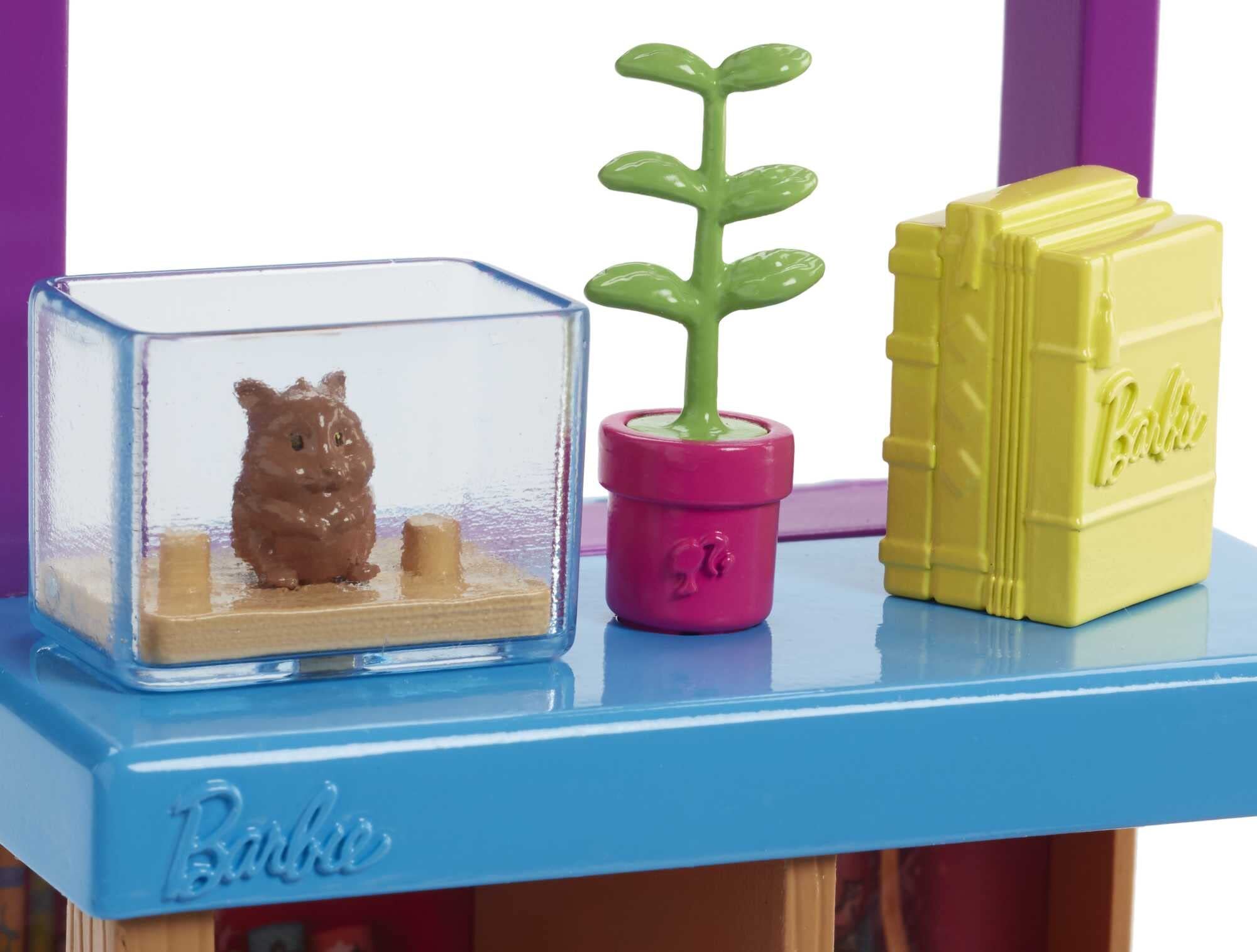 【豪華なセット】バービー せんせいドール、生徒の女の子ドール、反転する黒板、収納棚、ピンクのイス、ペットのハムスター、植物、本、テディベア、ランチボックス