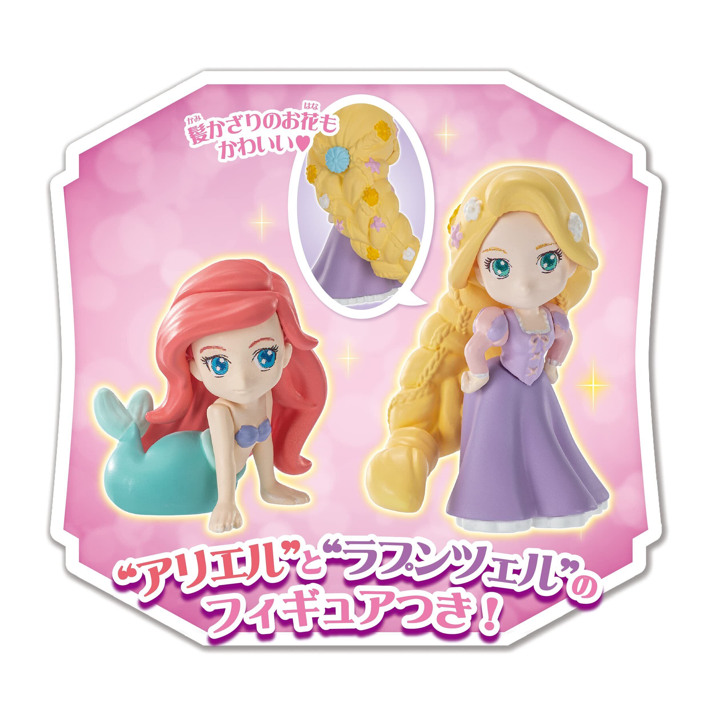 人気のラプンツェルとアリエルのフィギュアつきで、プリンセスのイメージカラーに合わせたケーキが作れます。プリンセスのケーキは大きなケーキにのせかえられます。
