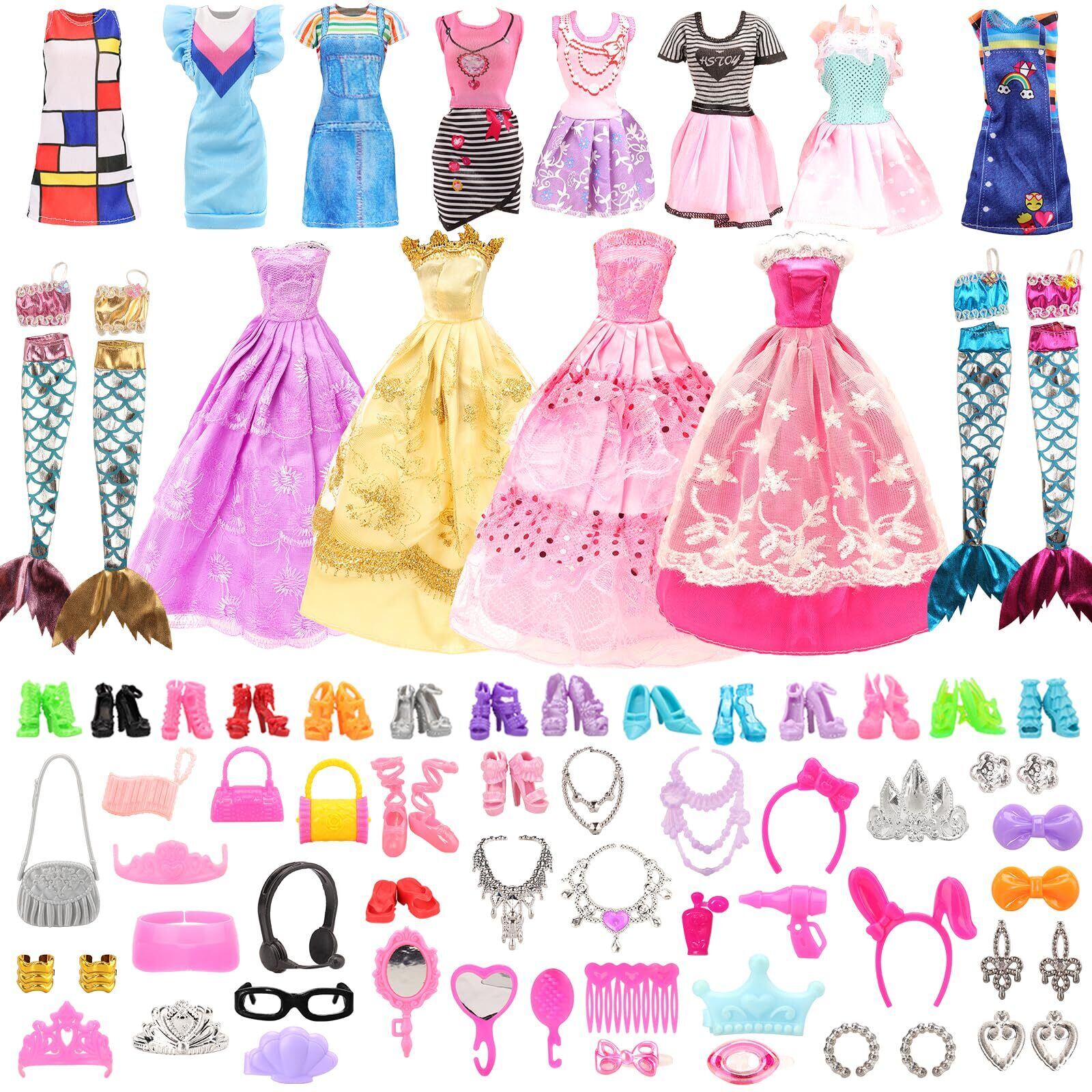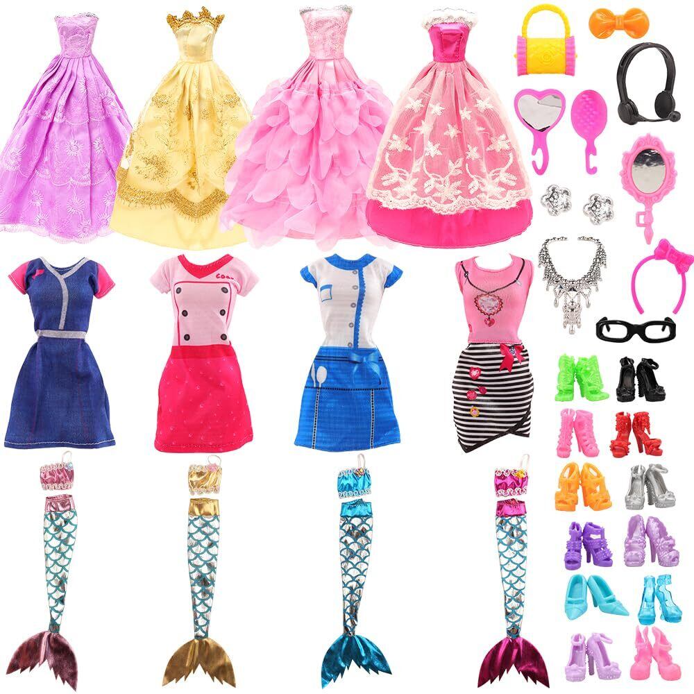 パッケージ---1/6人形用ドレス8枚+4枚人形用人魚ドレス+靴10足+40個アクセサリー (すべてランダム、お人形も含まれていない)、対象年齢:6+歳以上