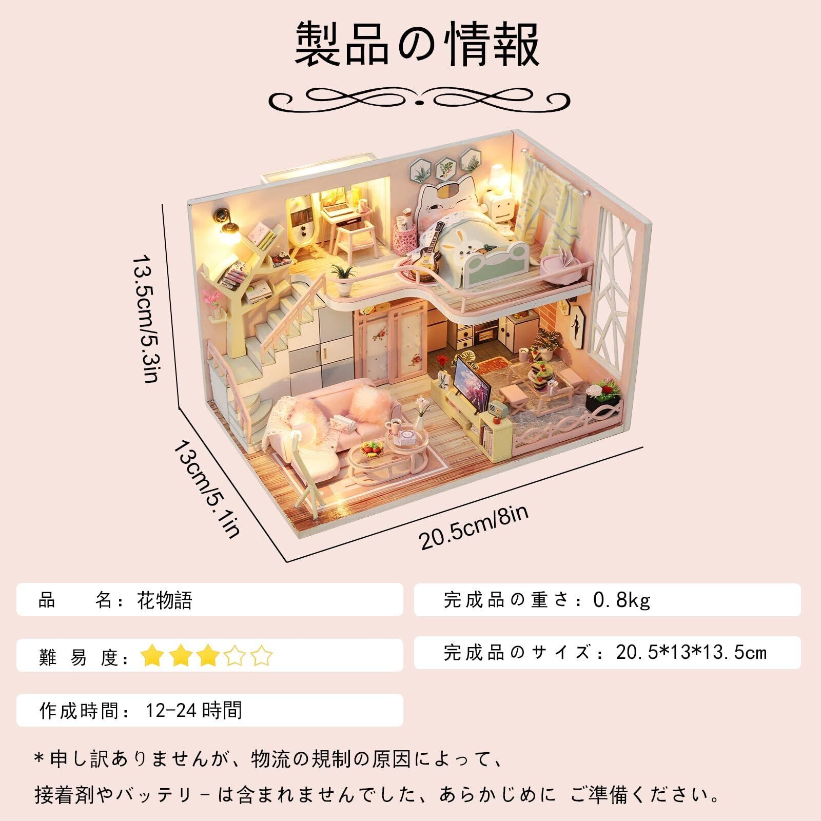 CUTEROOM DIY木製ドールハウスキット花モチーフ、 LEDライト+オルゴール付き手作りミニチュアハウス 贈り物に最適 (M026)