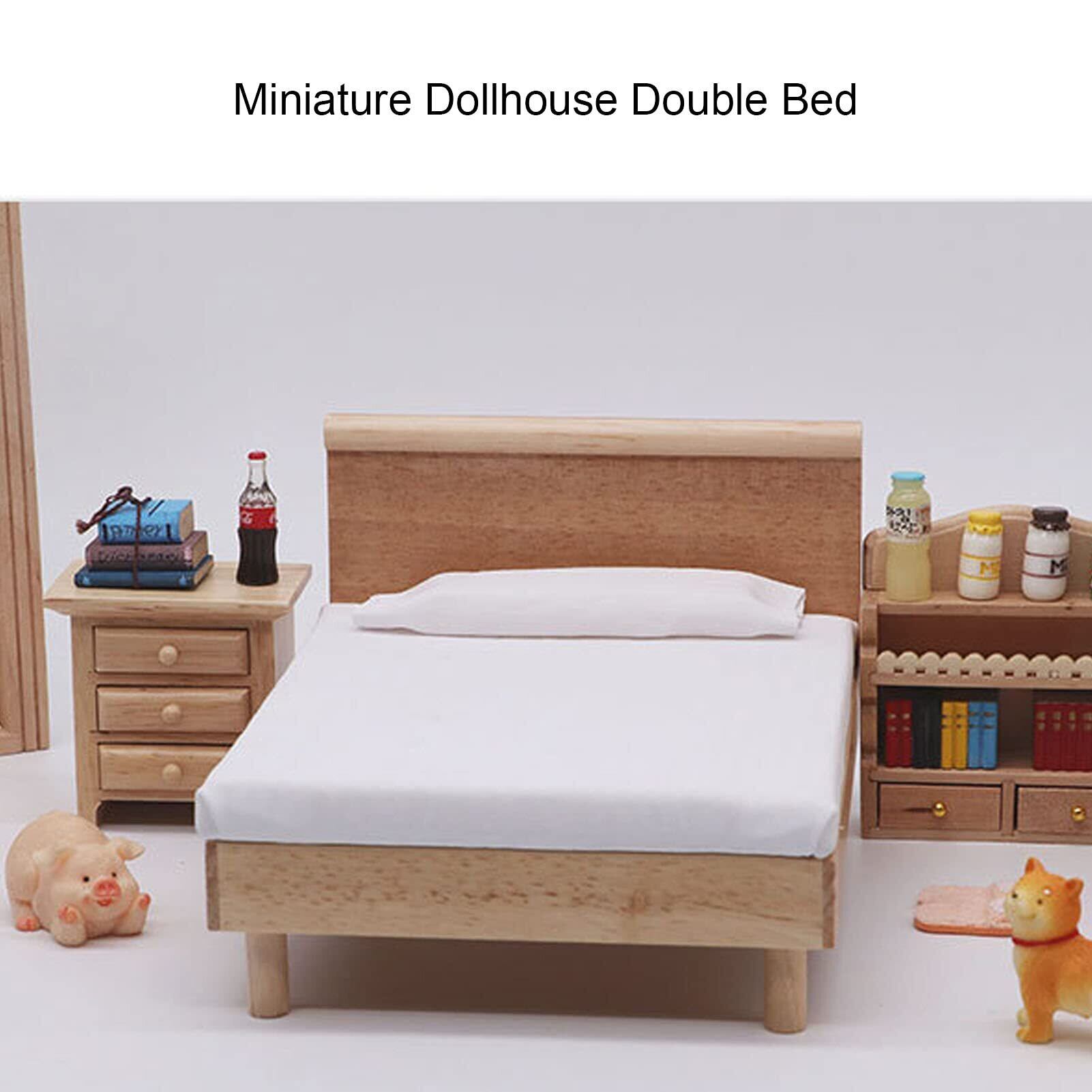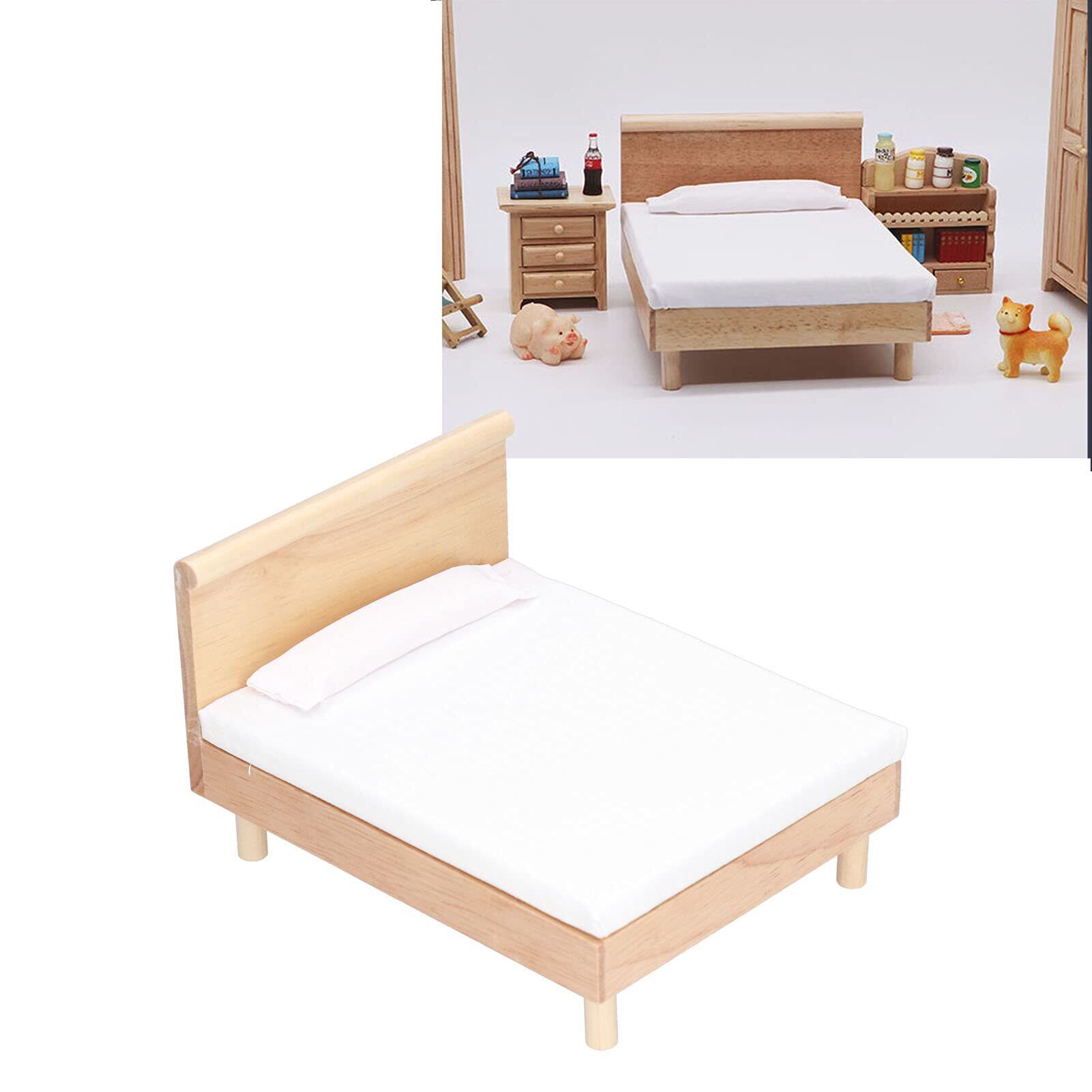 ミニチュアドールハウスベッド ドールハウス ベッド エレガントなデザイン ミニチュア家具 1/12ミニチュア木製ベッド フィギュア 部屋 寝室 装飾 ドールハウス デコレーション アクセサリー