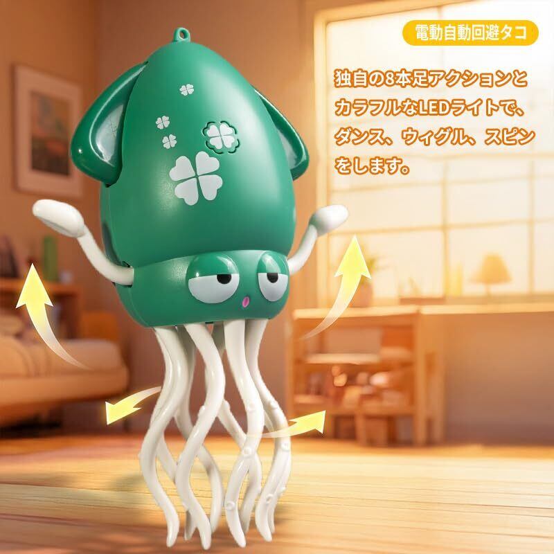【2025話題になるインタラクティブ電動イカ】2025年最新電動タコのおもちゃがくねくねリズムに反応!かわいい形をして、電源を入れると陽気な音楽に合わせて、音に反応し、手を叩くと方向転換。動くイカおもちゃがSNSにはイカゲームと呼ばれて超大人気。8本足アクションとカラフルなLEDライトで、ダンス、ウィグル、スピンができます。床やカーペットを自在に移動。動きと光で、お子様のエンターテイメントや感覚遊びに最適。子供のおもちゃとして最適な設計で、楽しめるイカ おもちゃ 動くロボットです。