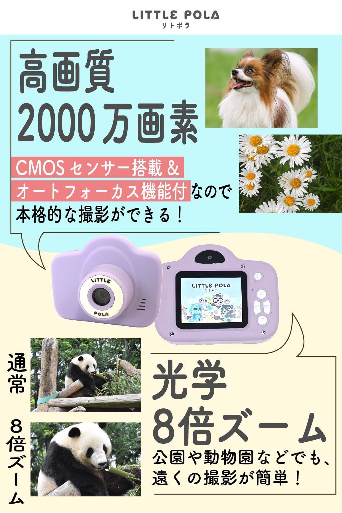 【リトポラ 公式 】日本企業 キッズカメラ トイカメラ (ゲーム有無選べる) 子供用カメラ 女の子 男の子 写真 動画 音楽 AF 光学ズーム8倍 32GB スマホ転送 変換アダプター ストラップ付 (ゲームロック, スペシャルエディショ)