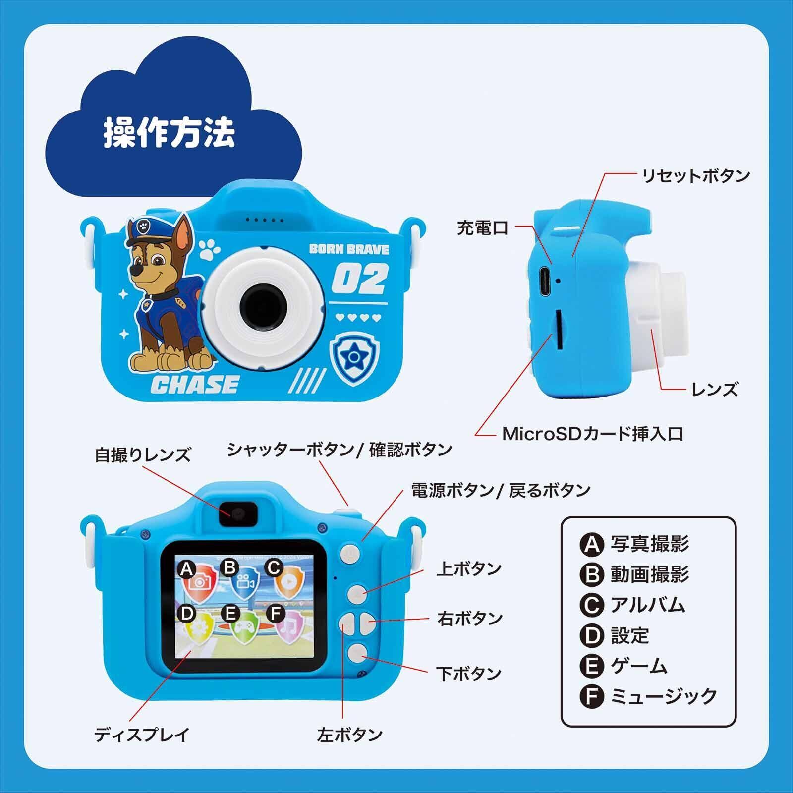 【カヨトイズ限定オリジナル】 大人気パウパトロールのトイカメラカヨトイズの完全オリジナルで発売! 【POINT】 自撮りできるインカメラつき! かわいいストラップ付き! 画像をパソコンに転送できる! オリジナルフォトフレーム10枚入り キャラごとのオープニング画面 楽しいゲームが4種搭載 音楽再生もできる 【スペック】 ●対象年齢:3歳以上 ●機能:写真・動画・オリジナルフレーム・セルフィ・ミュージック・ゲーム ●バッテリー容量:600mAh ●充電時間:約1.5時間 ●記録メディア:本体メモリ(約100枚保存) ●拡張ストレージ:MicroSDカード64Gまで対応(別売り) ●充電タイプ:マイクロUSB Type-C ●画素数:最大約200万画素 ●寸法:約W101×H49×D65mm ●重量:約100g ●セット内容:カメラ本体、カメラカバー、ストラップ、充電用コード(USB Type-C)、取扱説明書 ●原産国:中国 c2024 & TM Spin Master Ltd. c 2024 Viacom.