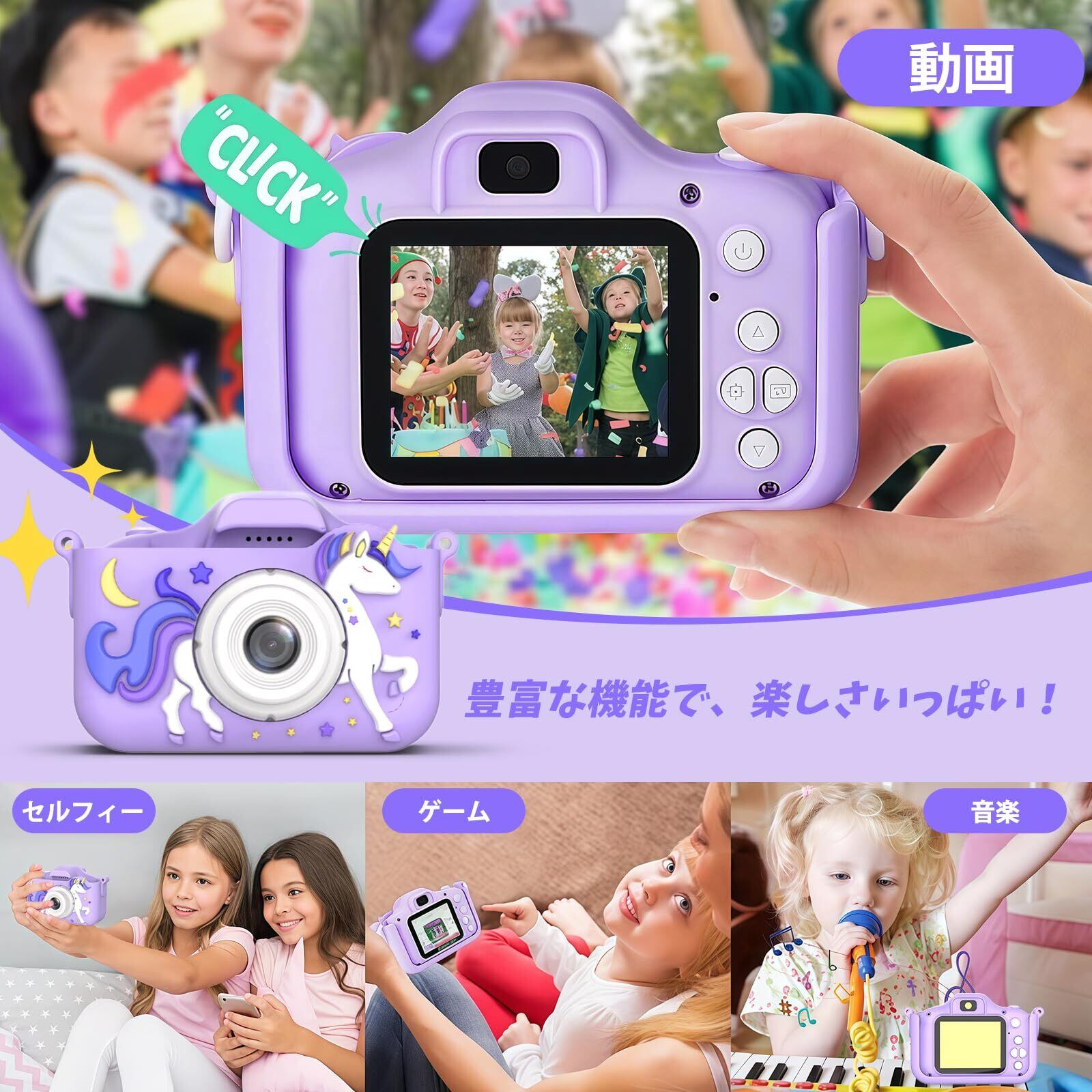 Tecnock キッズカメラ 日本語対応 子供用カメラ 4800万画素 1080P 動画 8倍ズーム 2.0インチIPS画面 音楽プレーヤー ゲーム機能 ユニコーンシリコン保護ケース付き 32GB SDカード プレゼント 男の子 女の子 プレゼント 誕生日 (パープル)